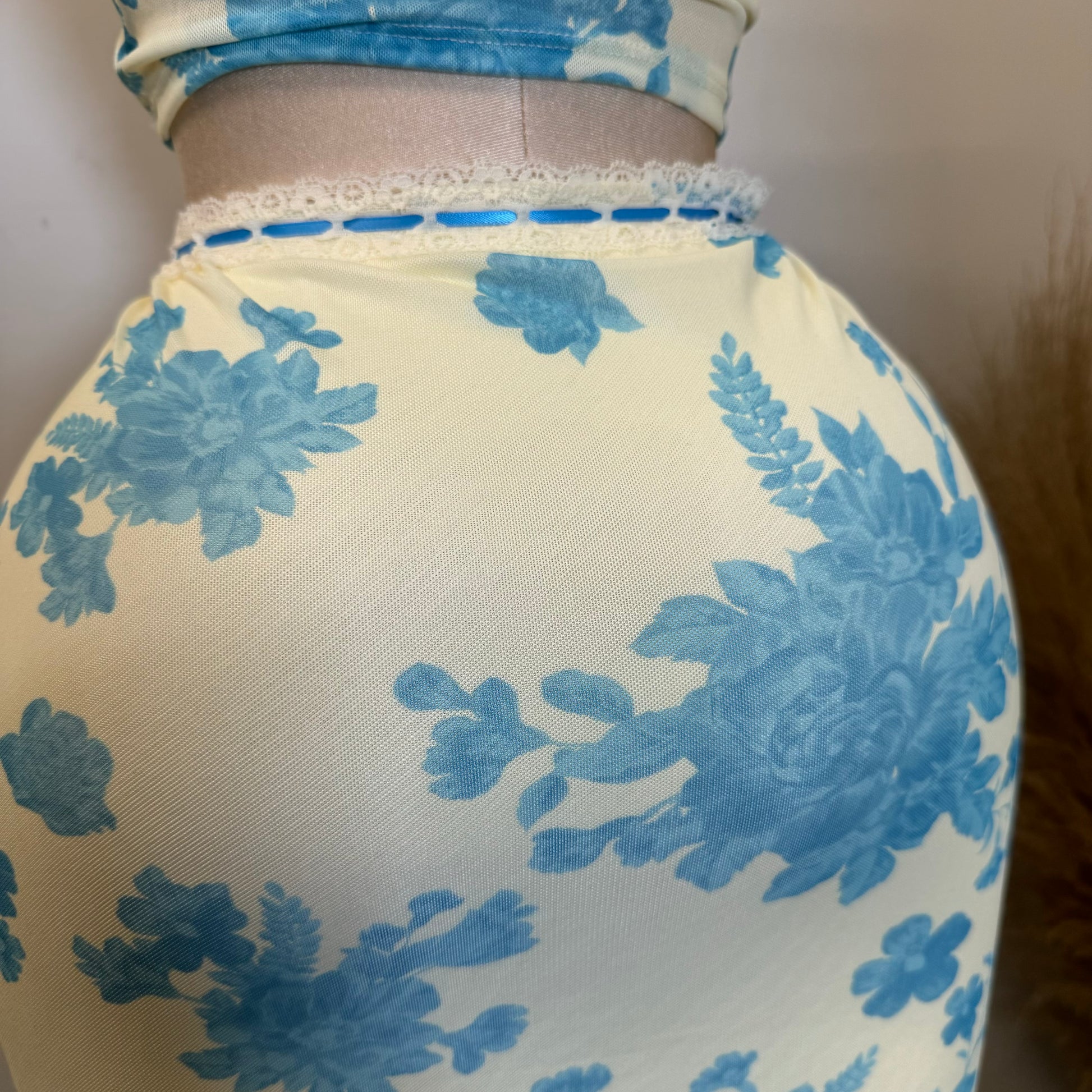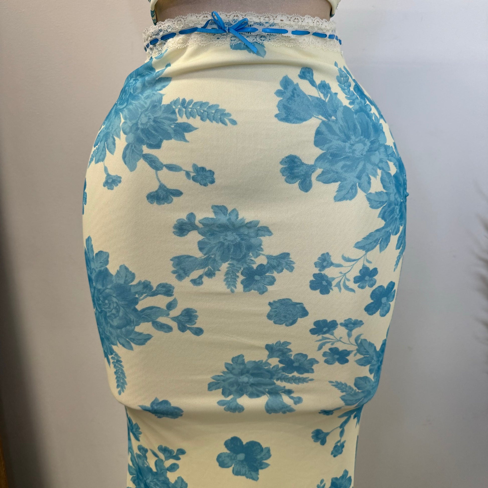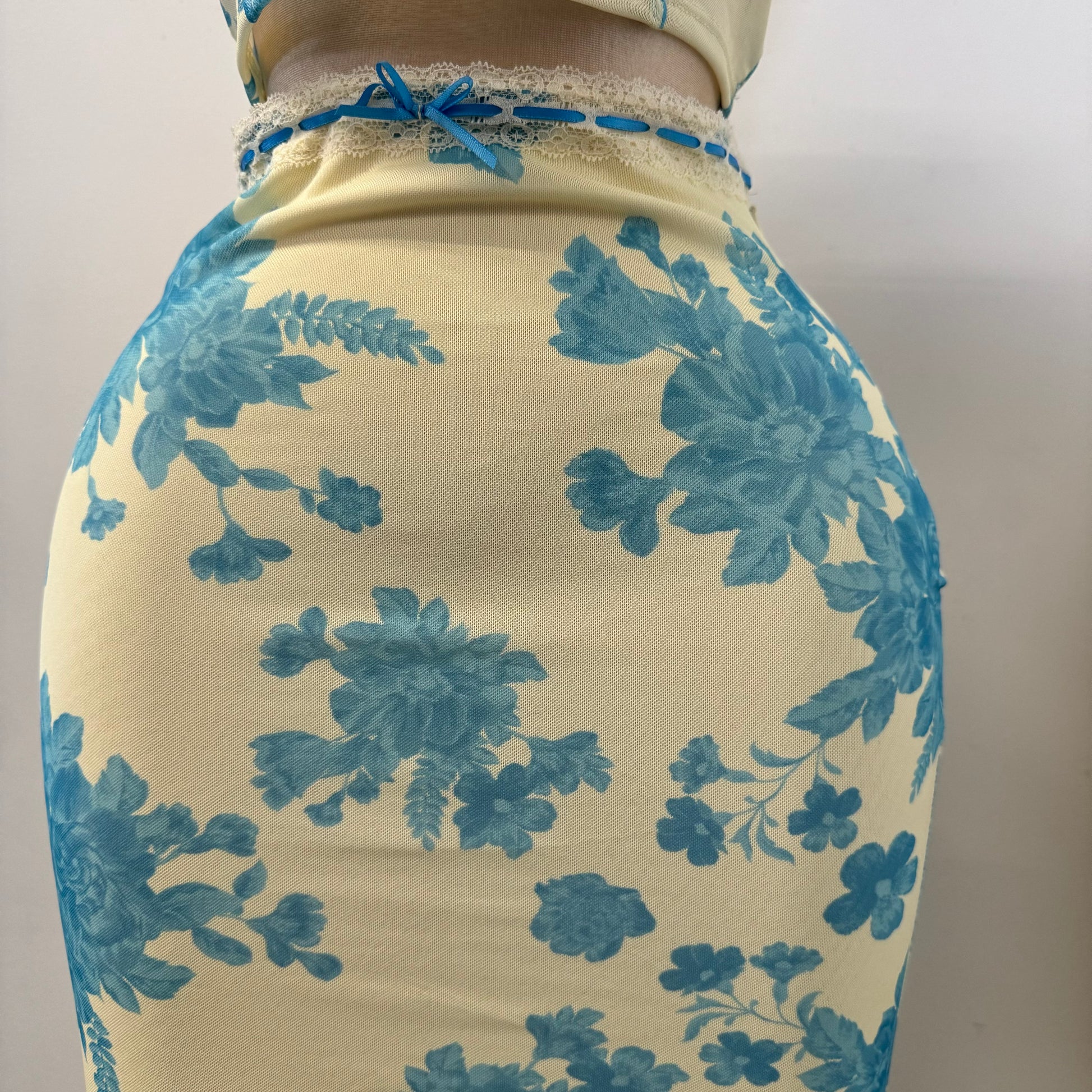 Mesh Two Piece Skirt Set-Blue