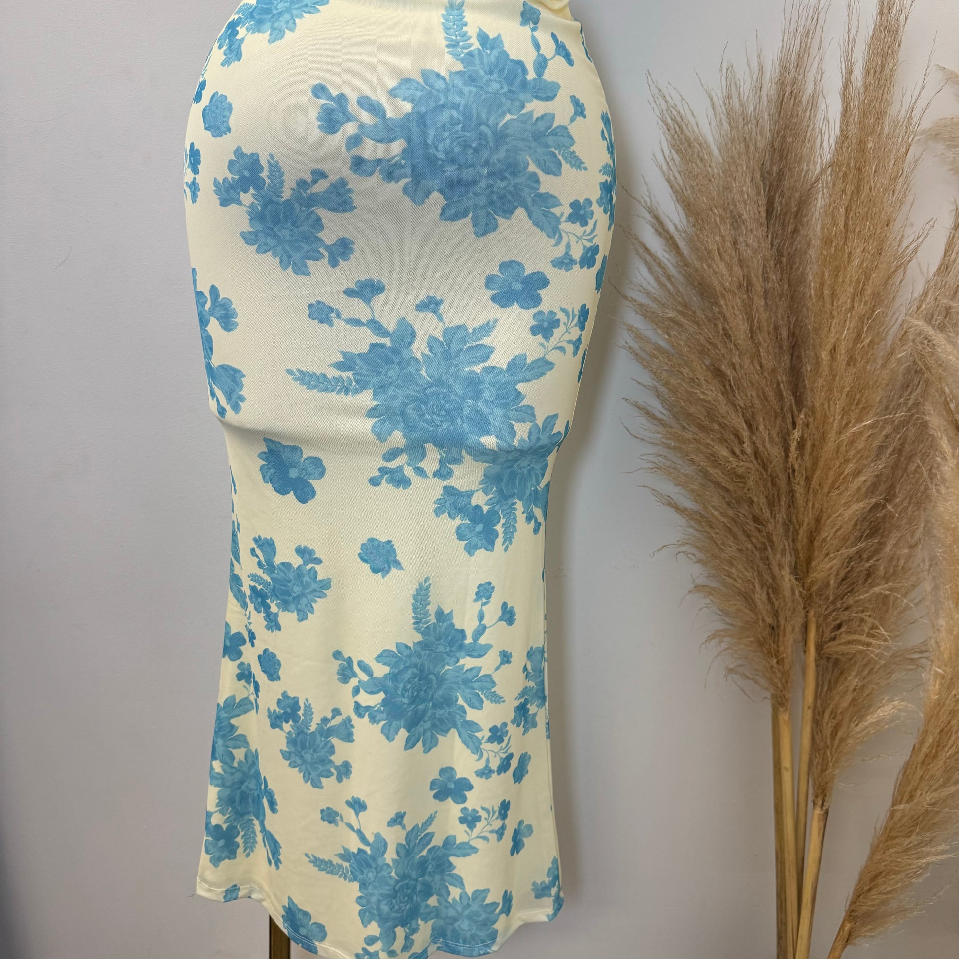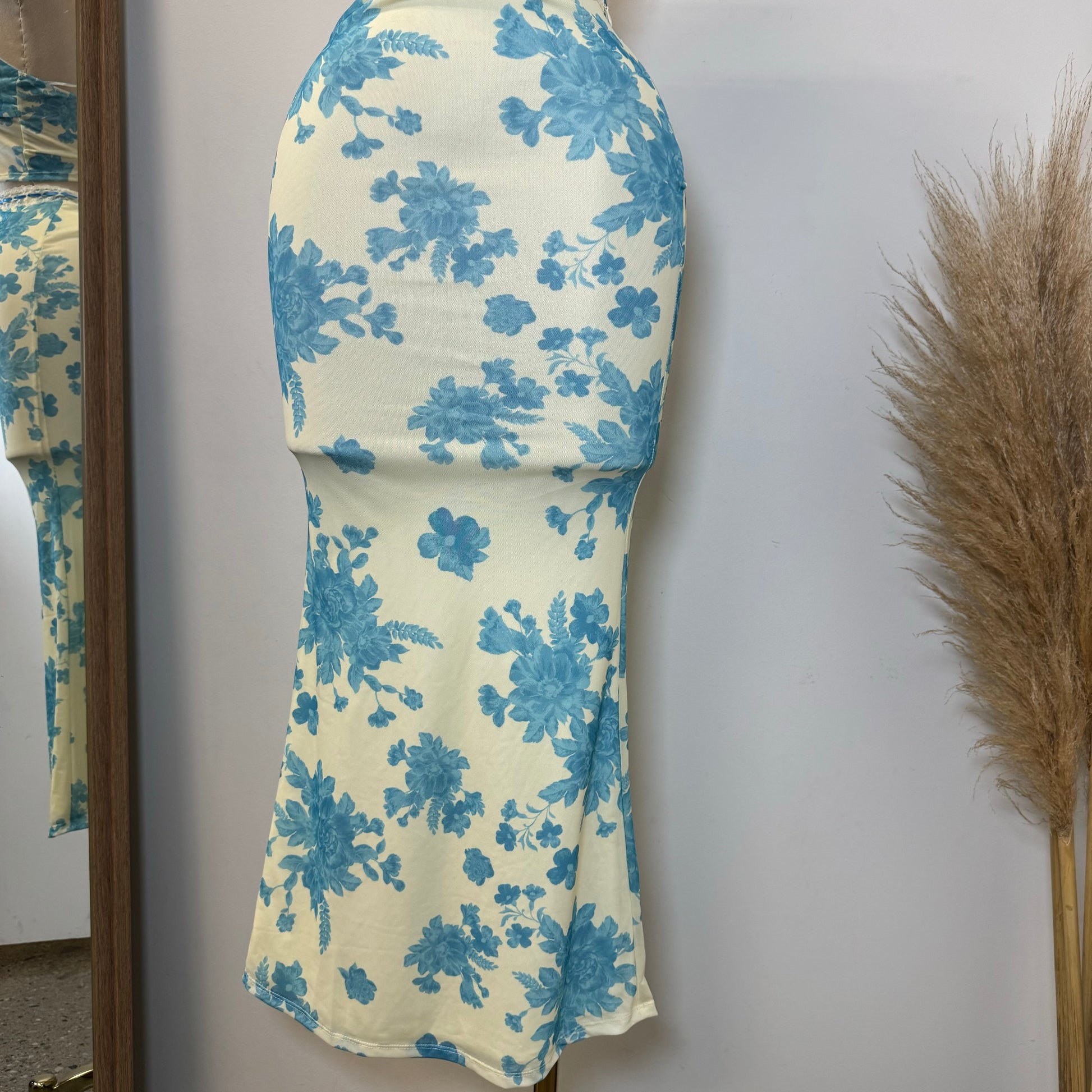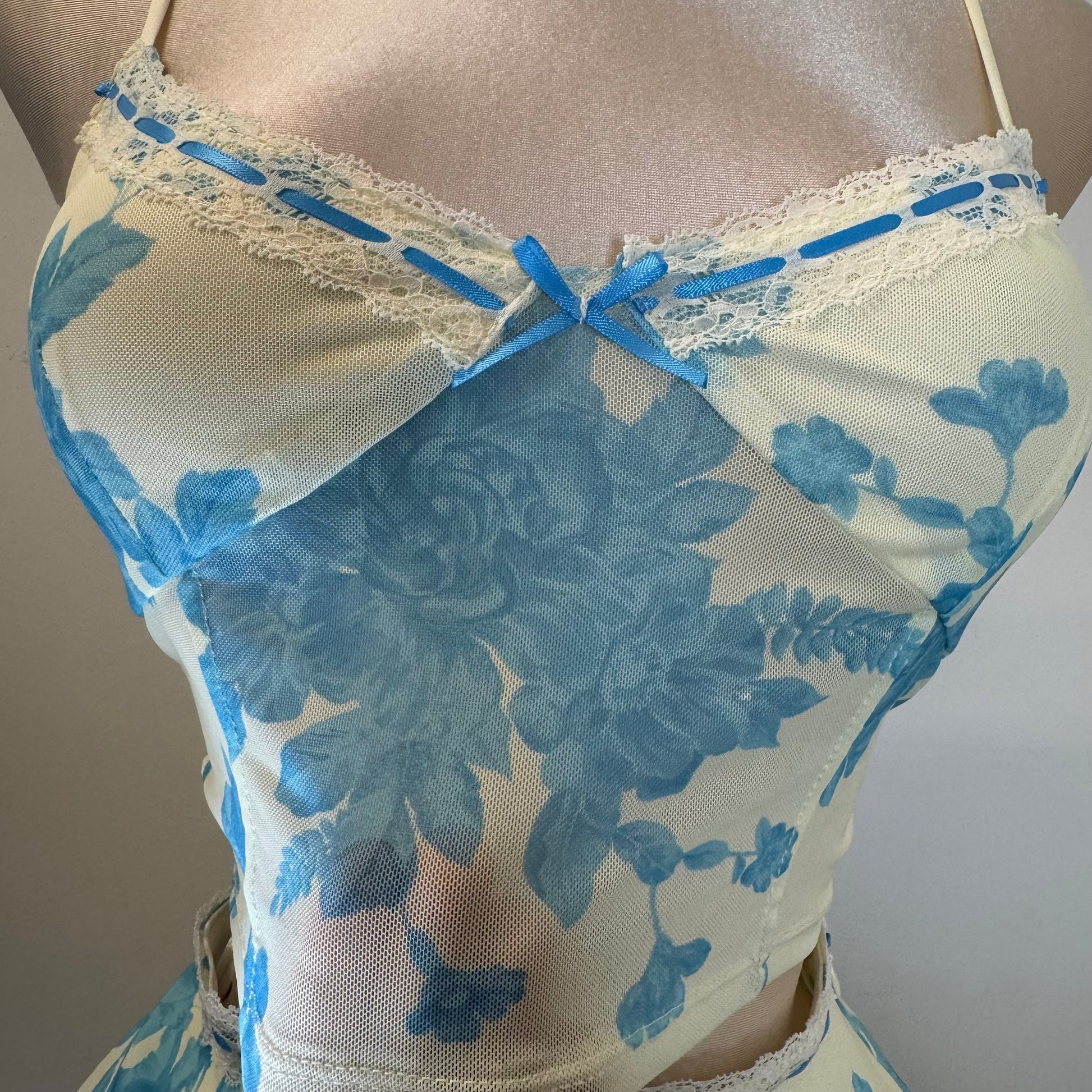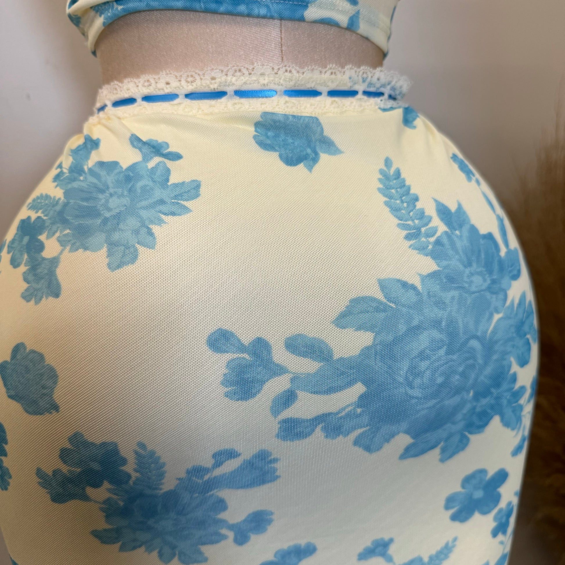 Mesh Two Piece Skirt Set-Blue
