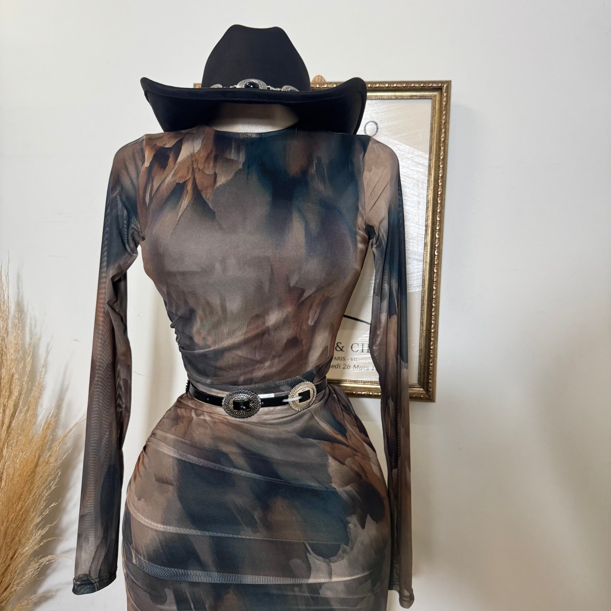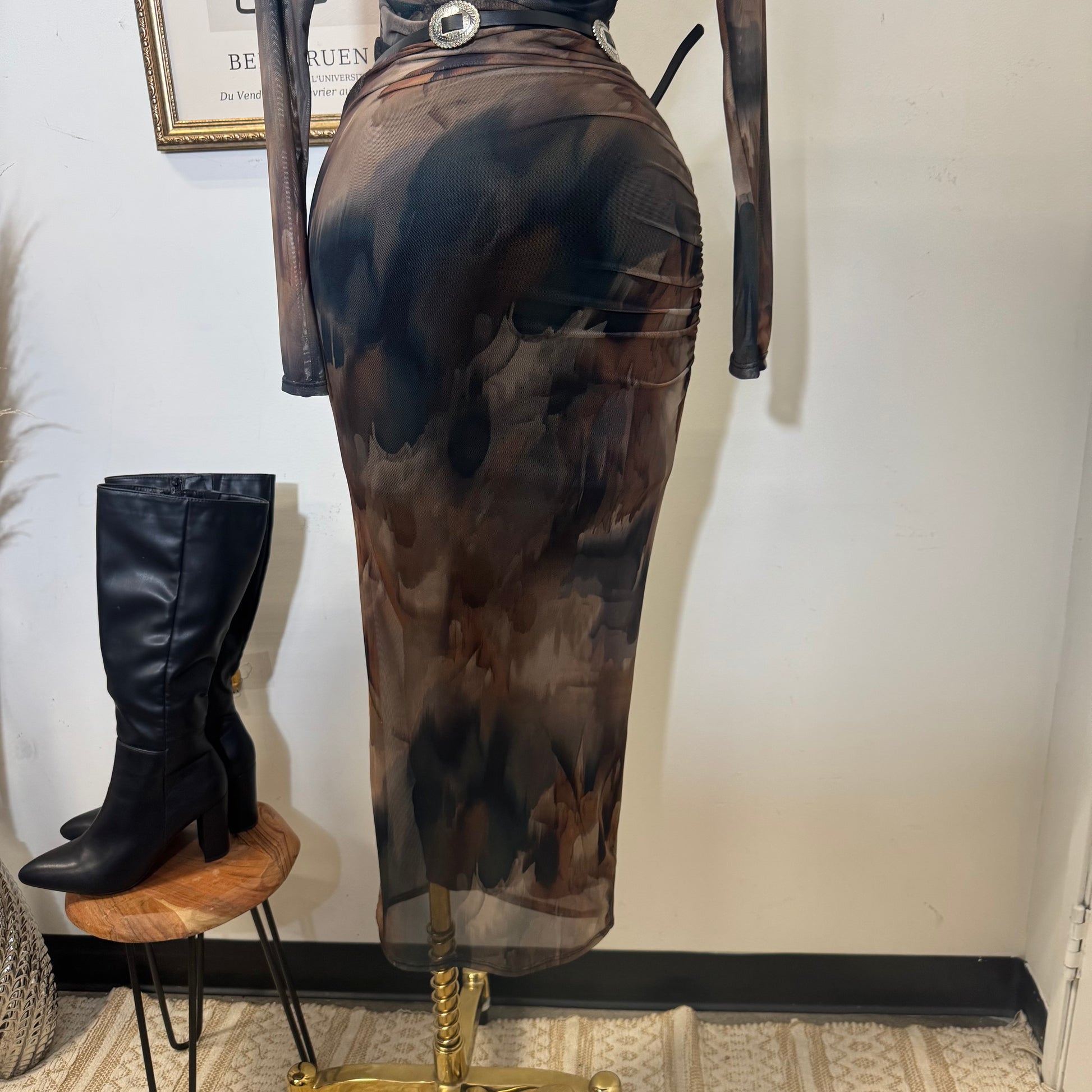 Multi Colored Mesh Maxi Dress-Brown Combo
