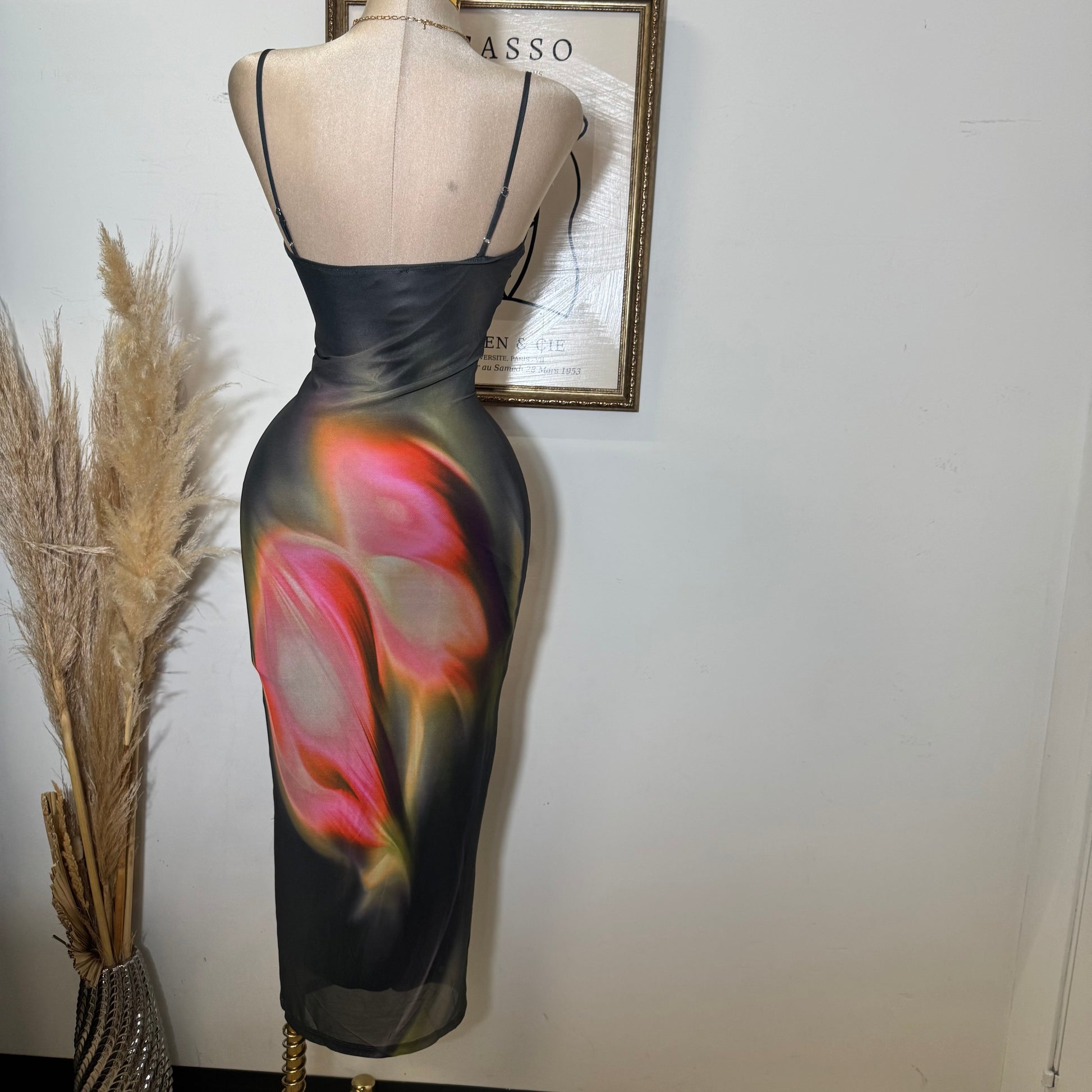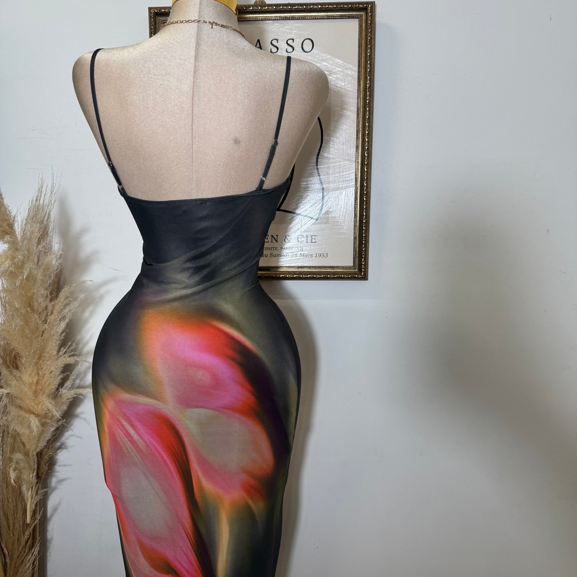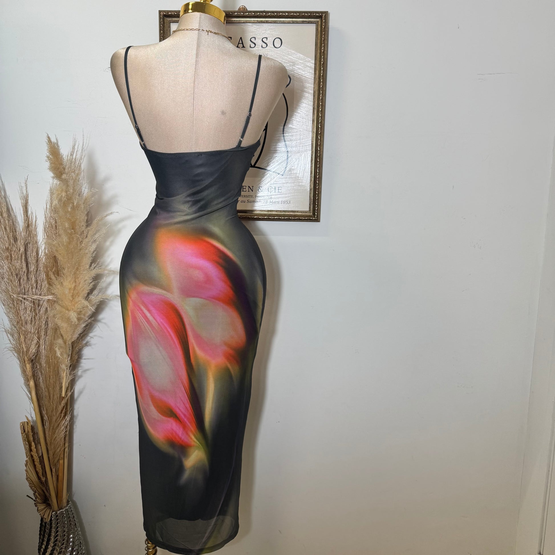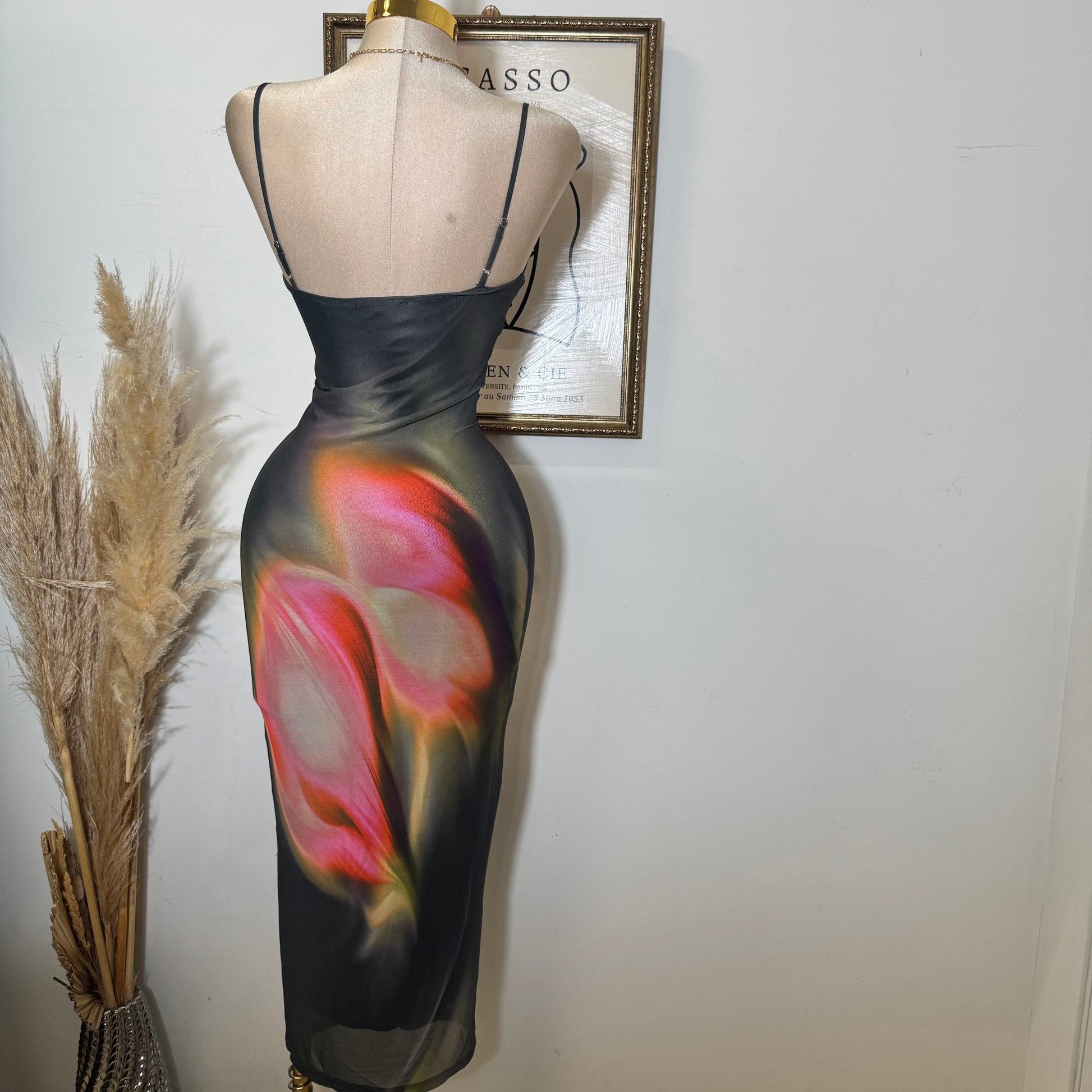 Multicolor Lace Trim Bodycon Midi Dress-Olive