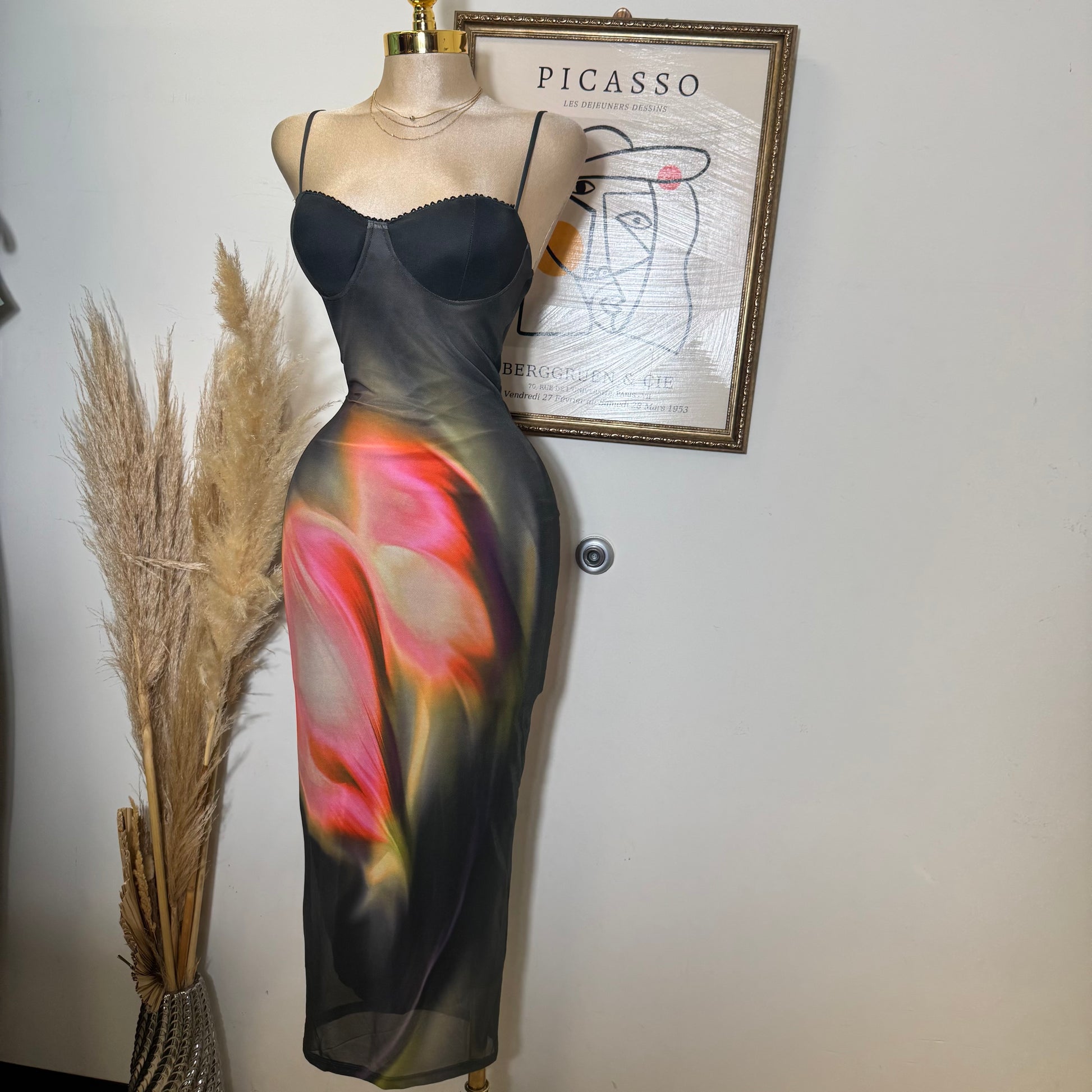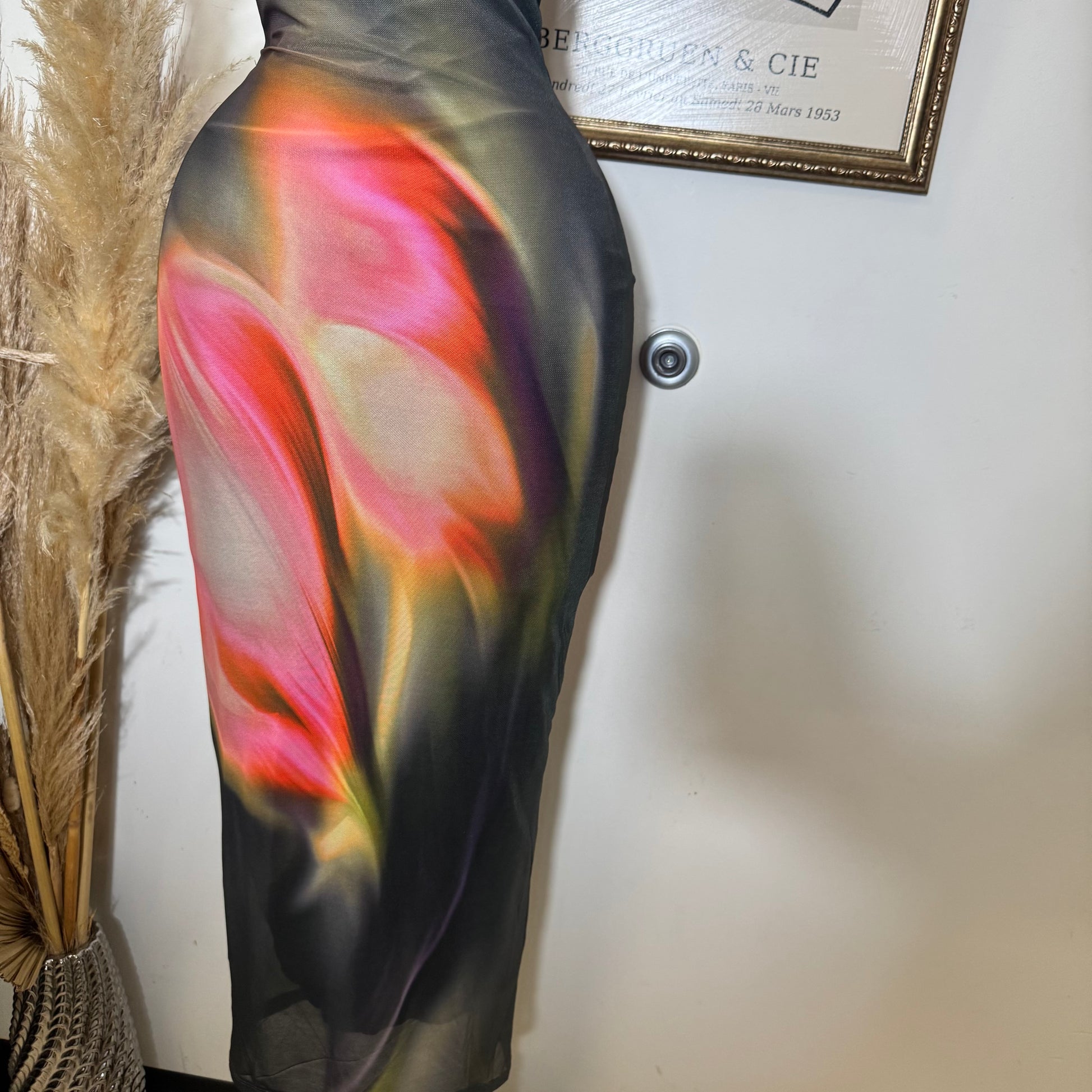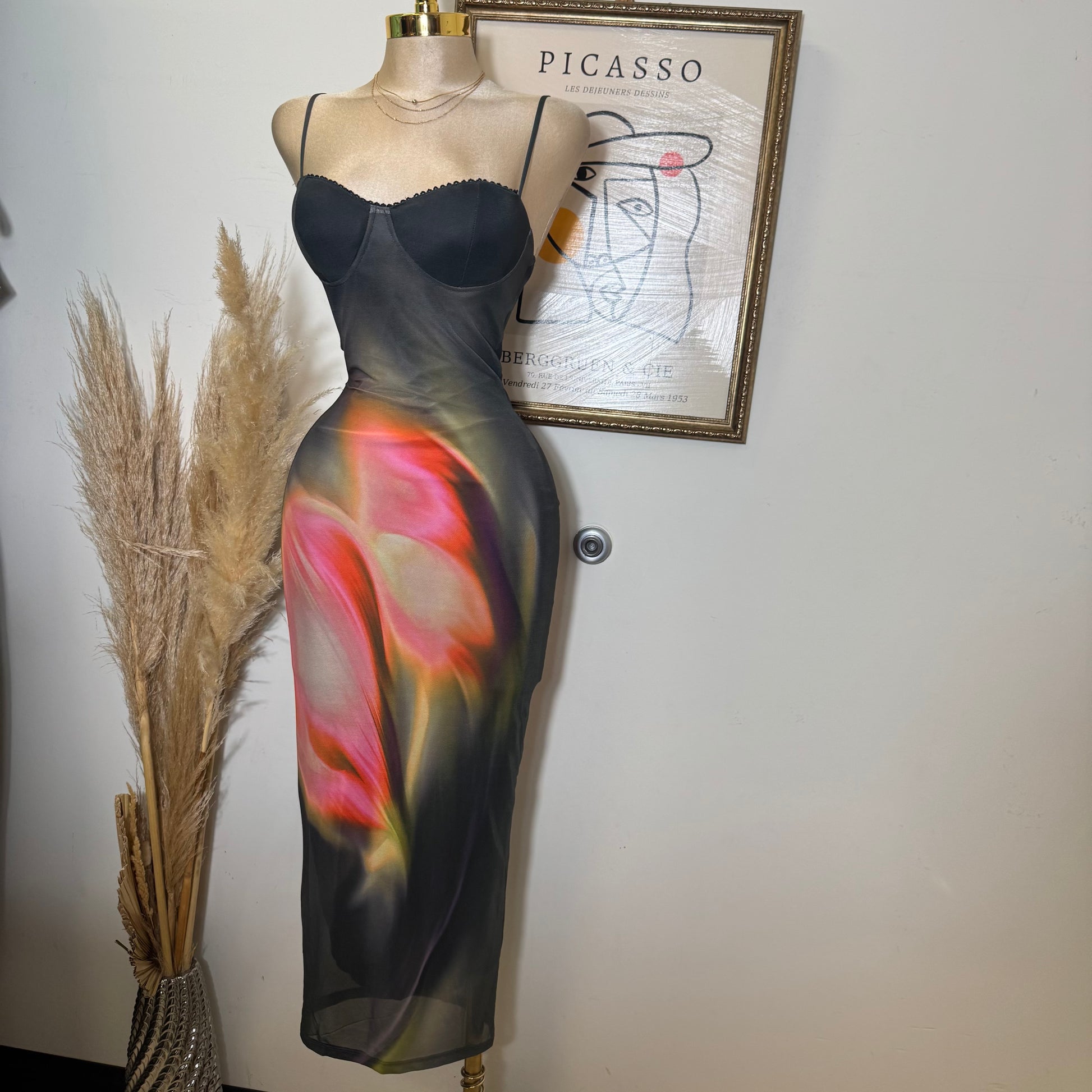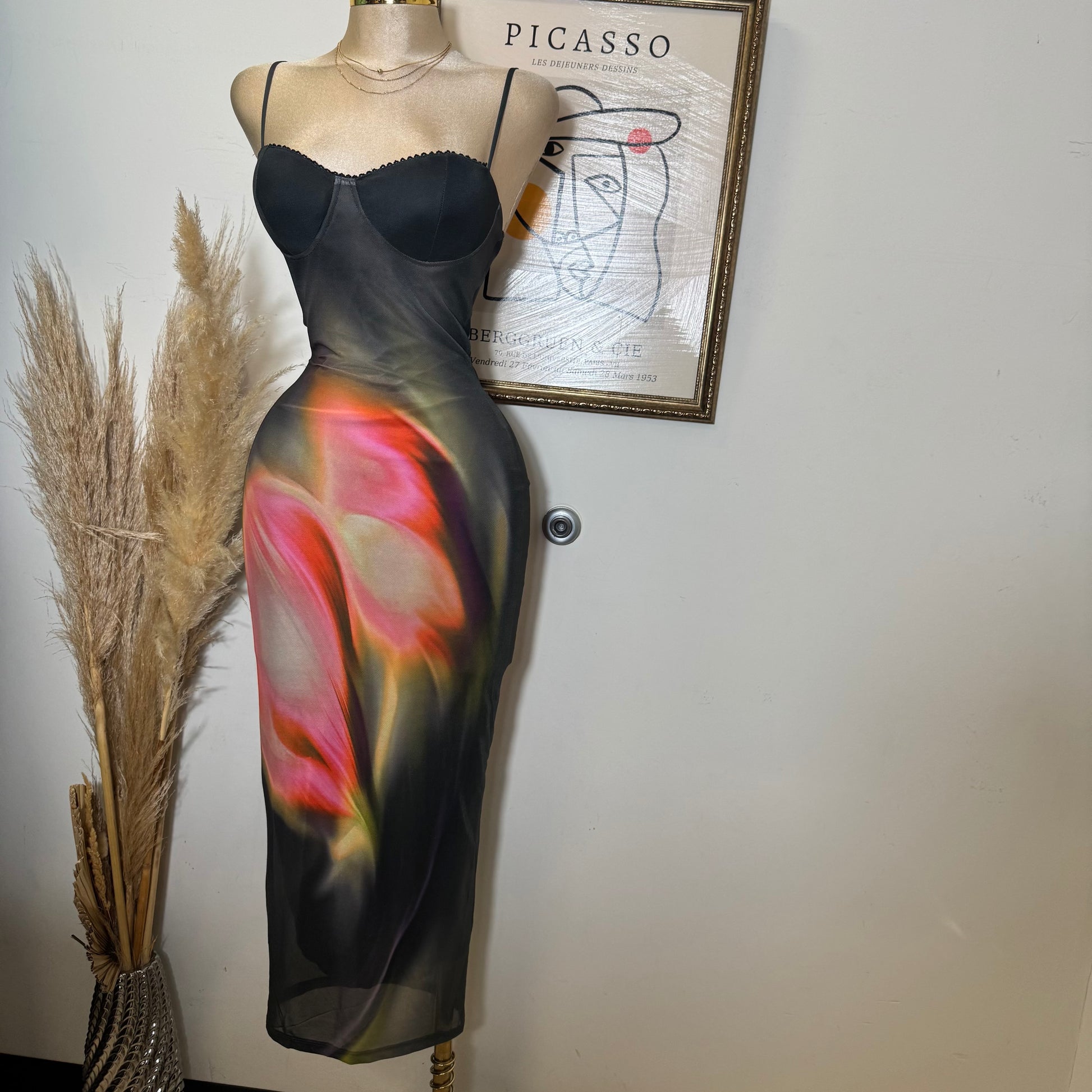 Multicolor Lace Trim Bodycon Midi Dress-Olive