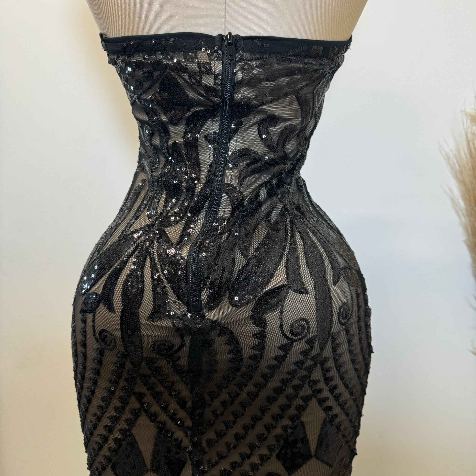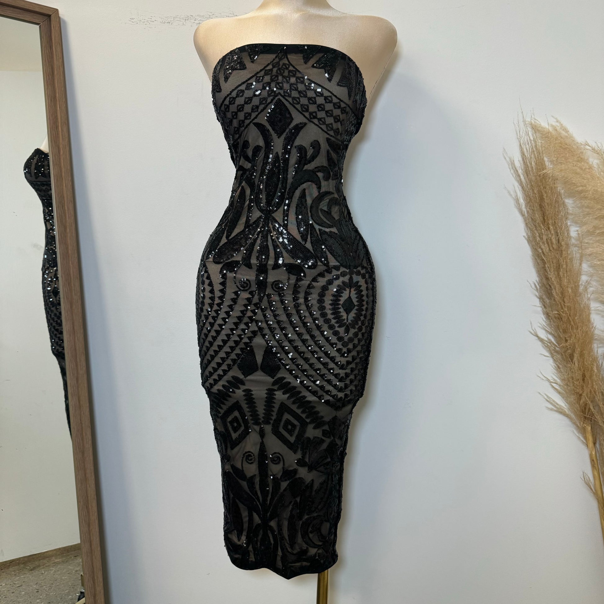 GLAM SEQUINS EMBELLISHED OFF SHOULDER BODYCON TUBE BACK SLITTED MIDI DRESS