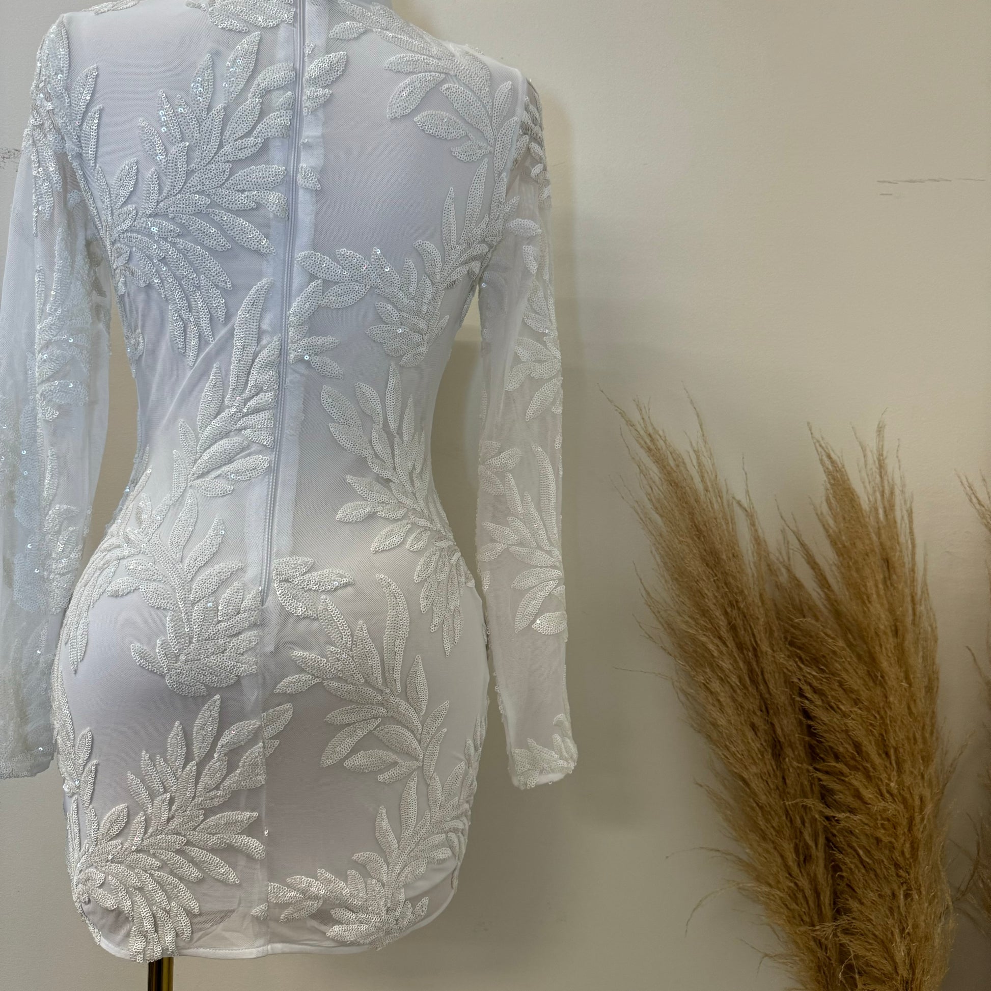 NYE sequins Long Sleeve Dress-White
