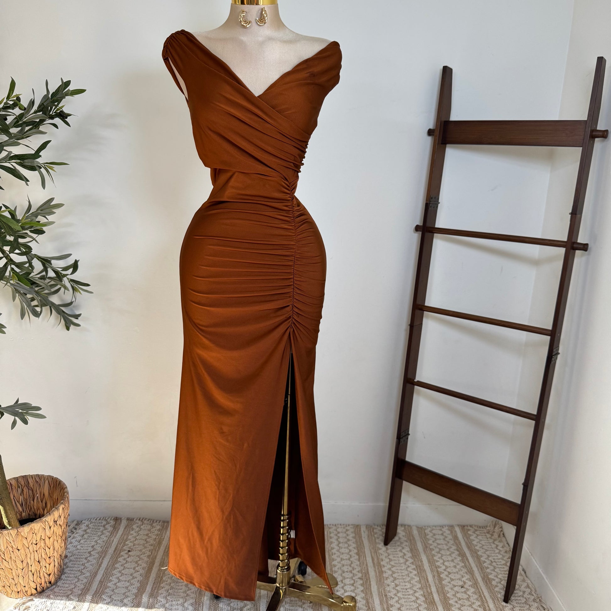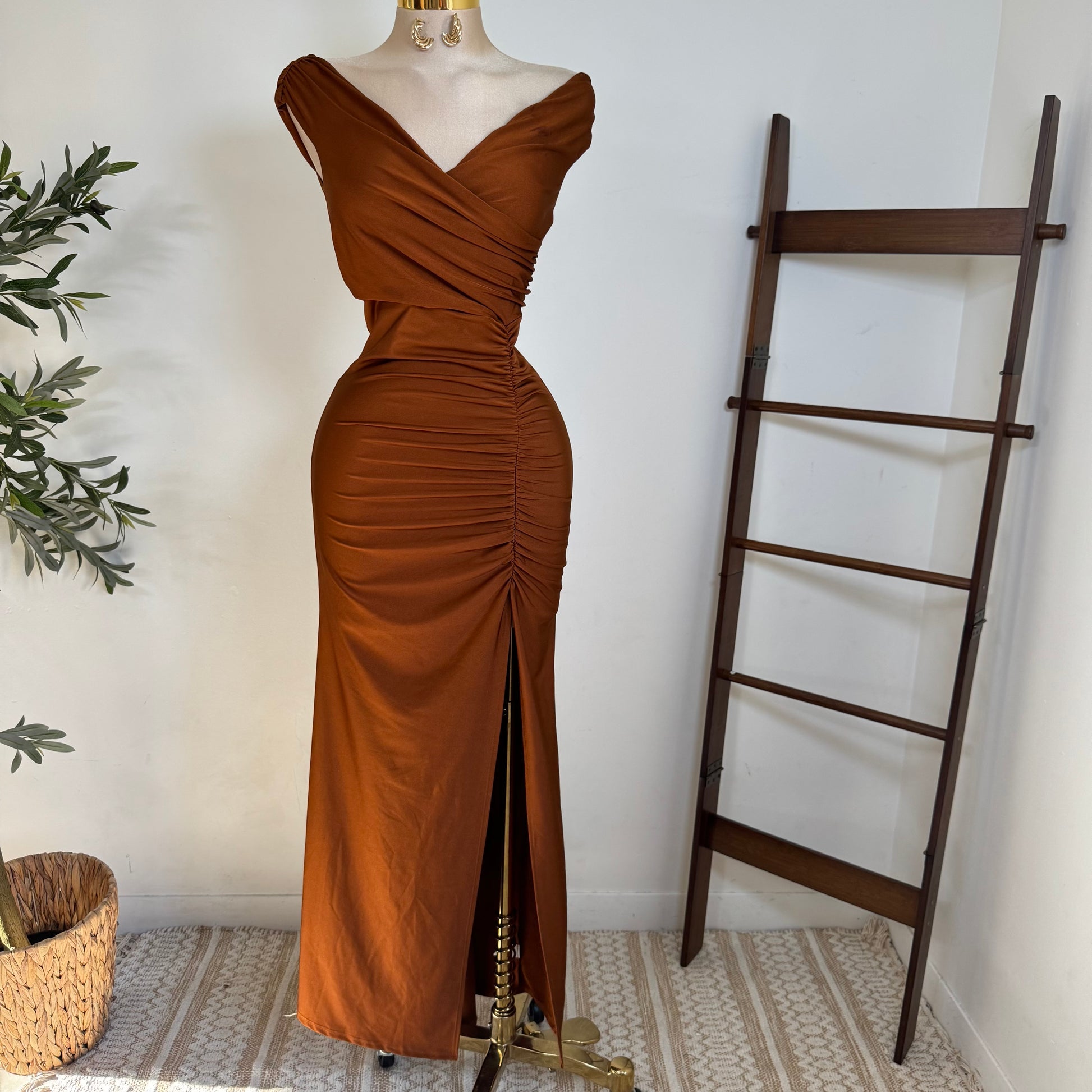 Off Shoulder Gala Dress-Cobre