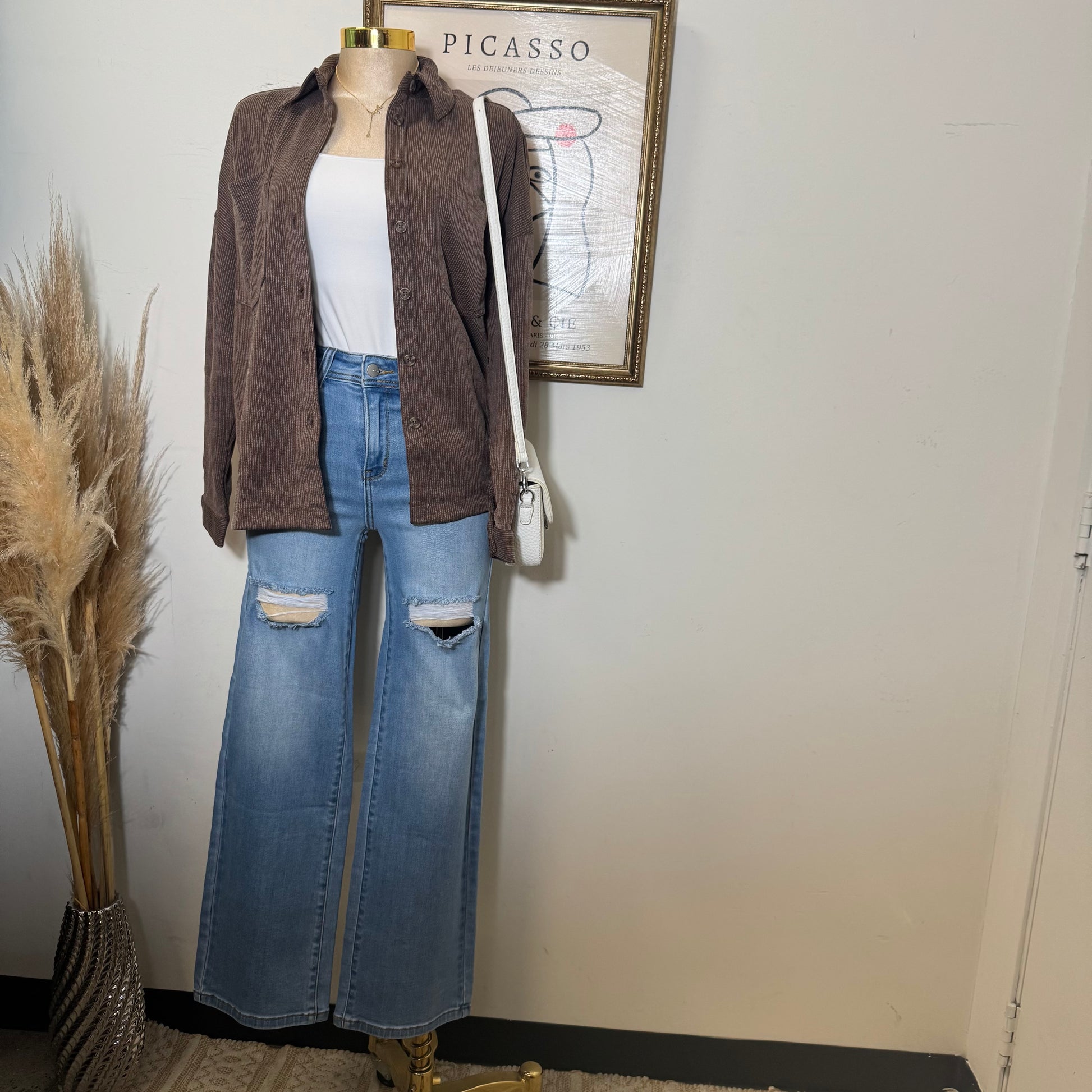 Oversized Pinstripe Collared Button Down Shacket-brown