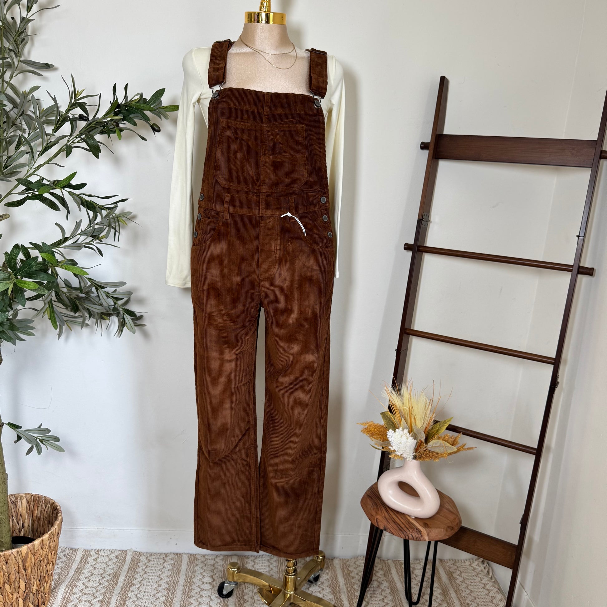 Relaxed Corduroy Boyfriend Overalls-Brown