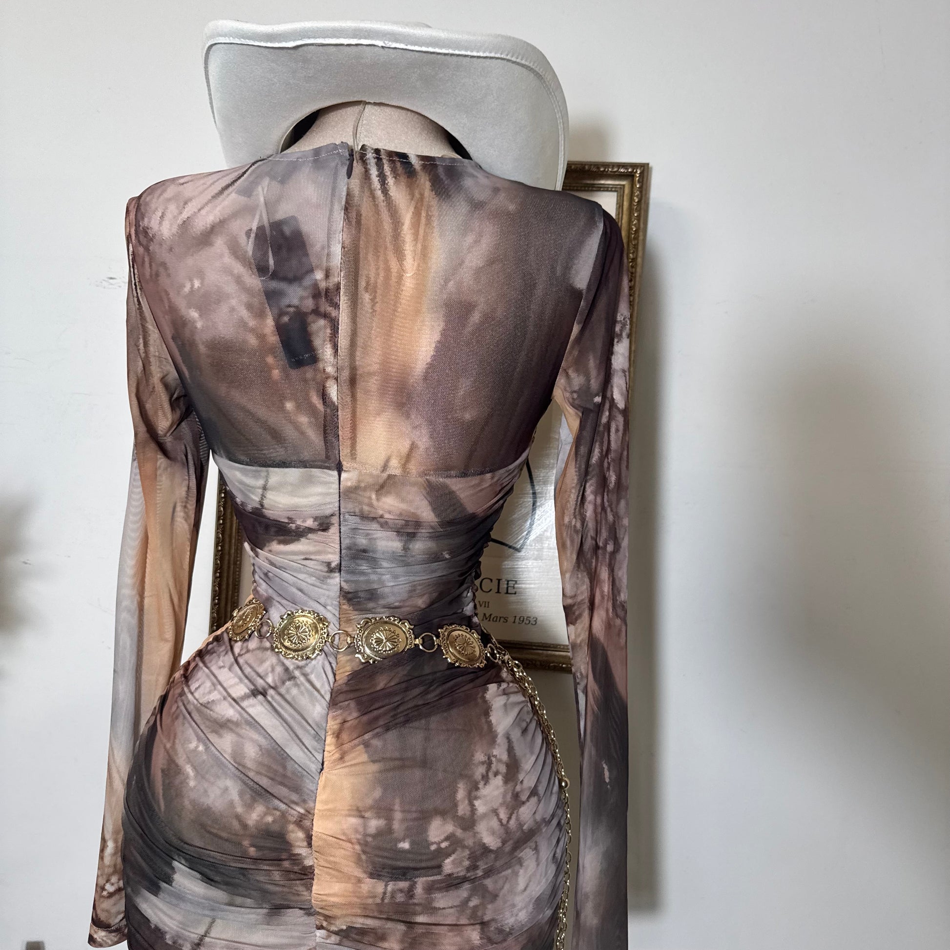 -Mesh Long Sleeve Dress
