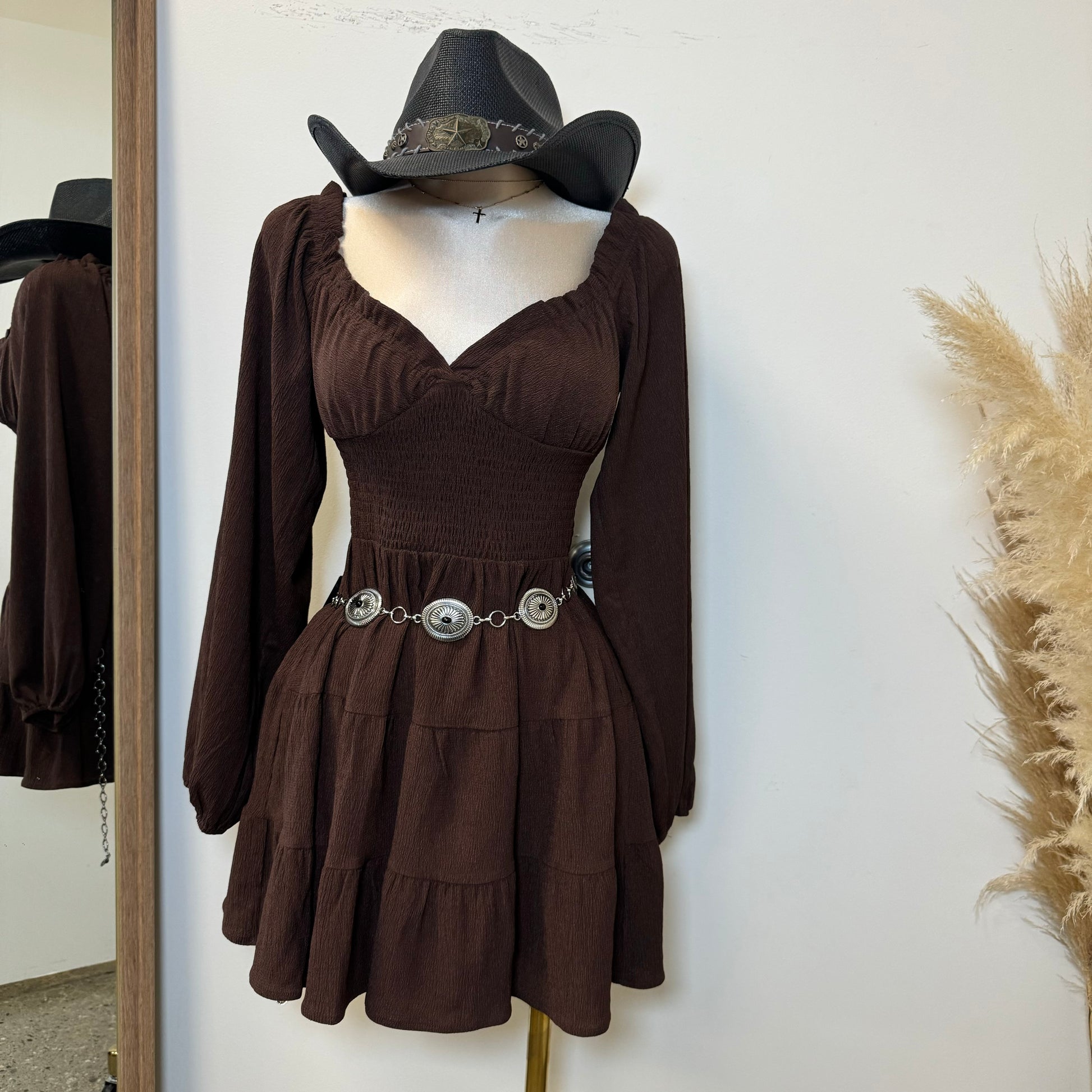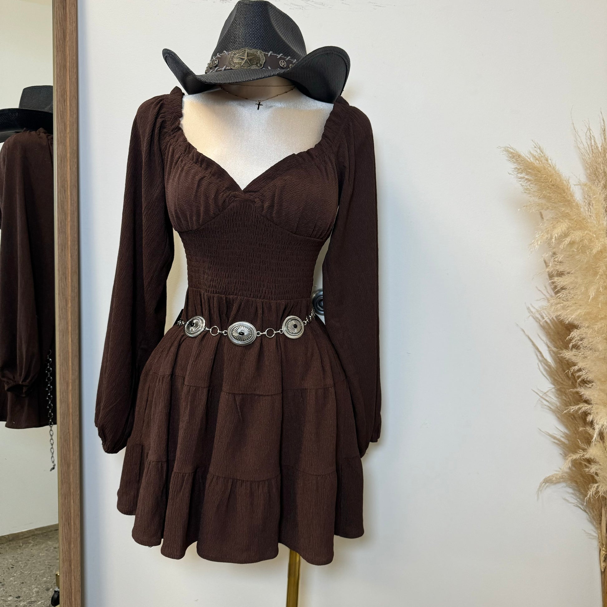 -Shirred bodice V-Neck Line Tiered Skirt Dress