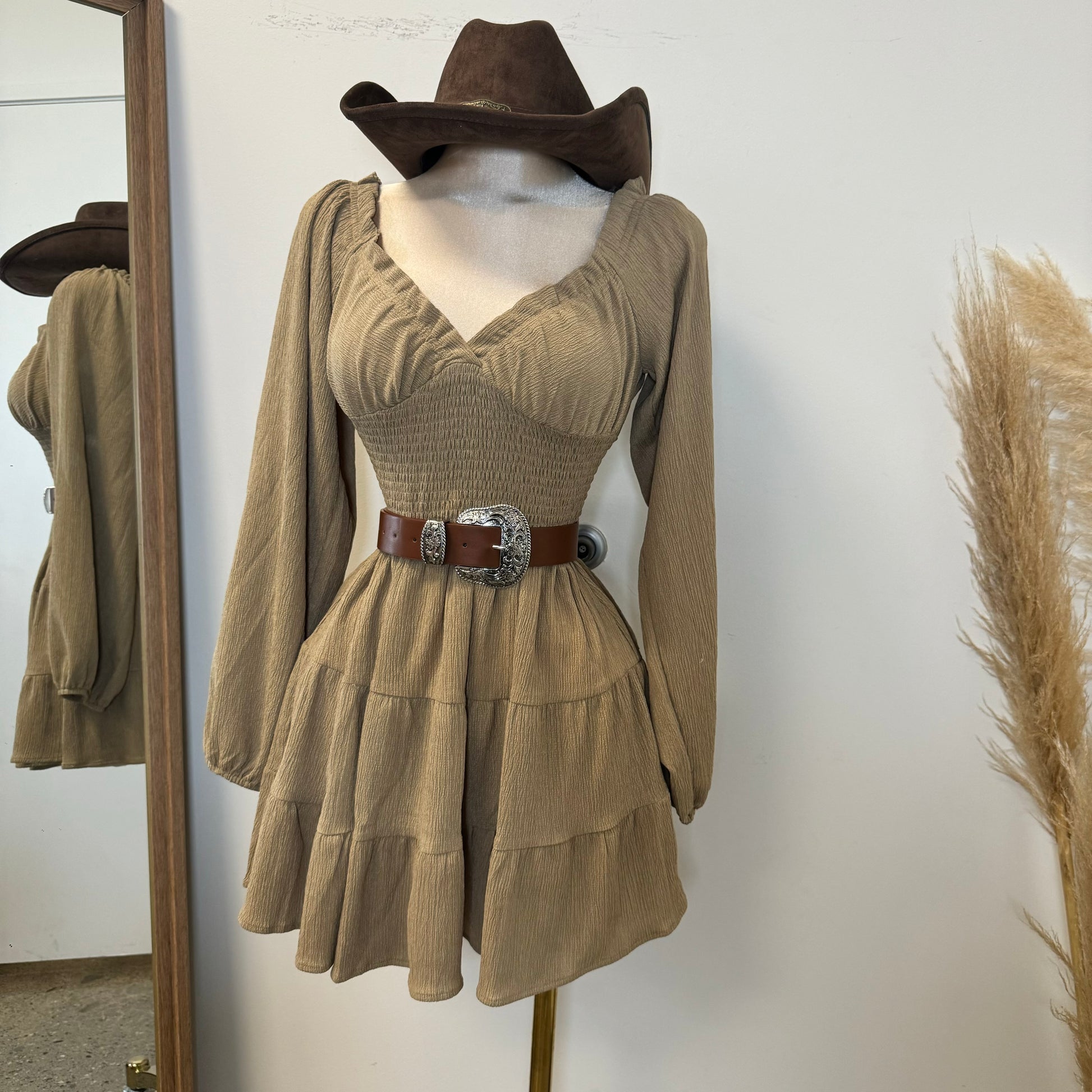 Shirred bodice V-Neck Line Tiered Skirt Dress