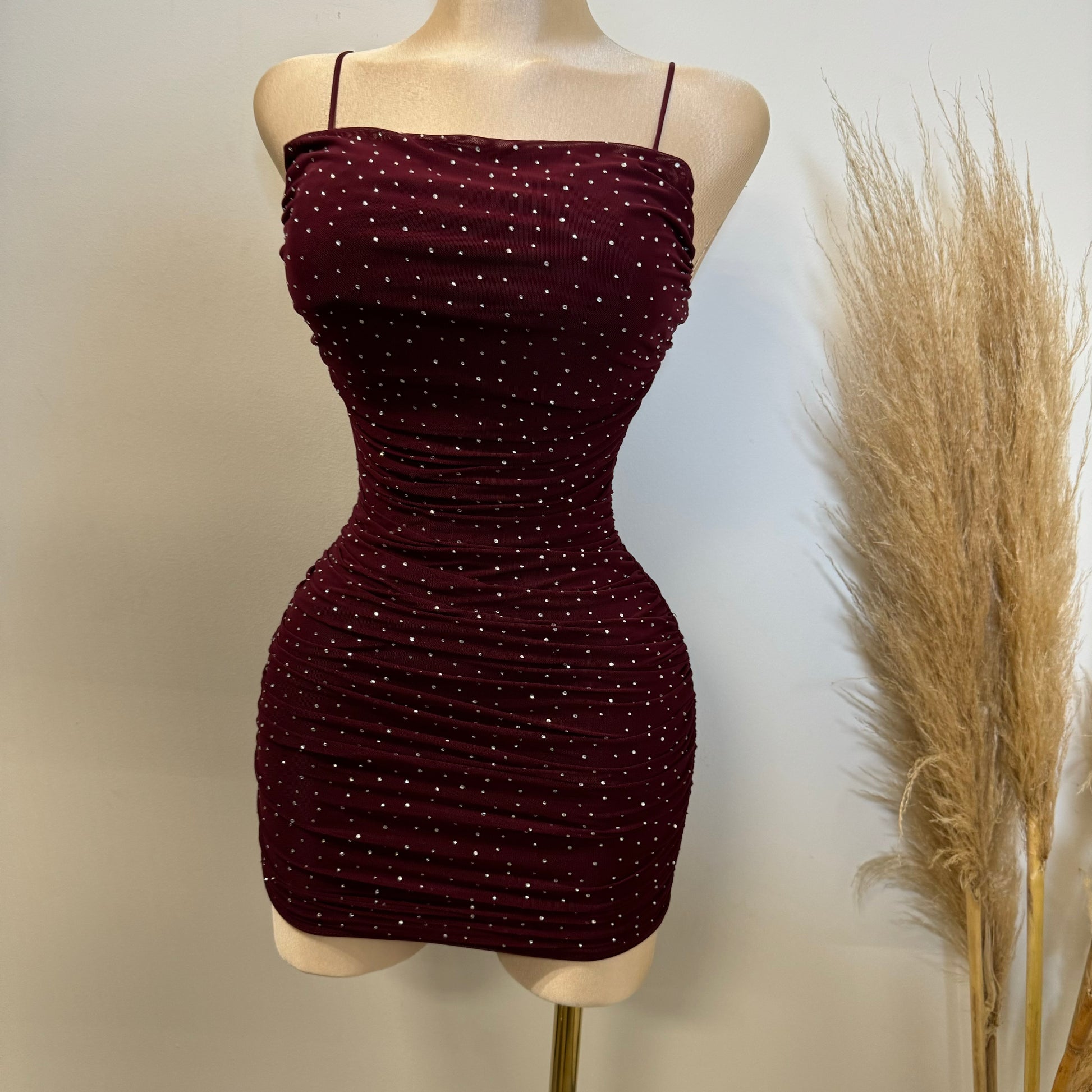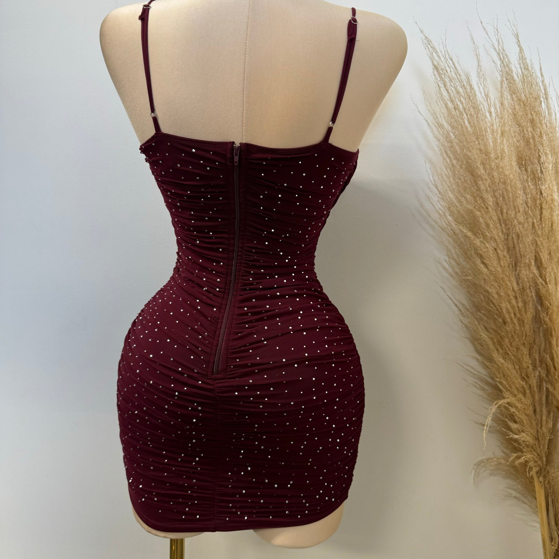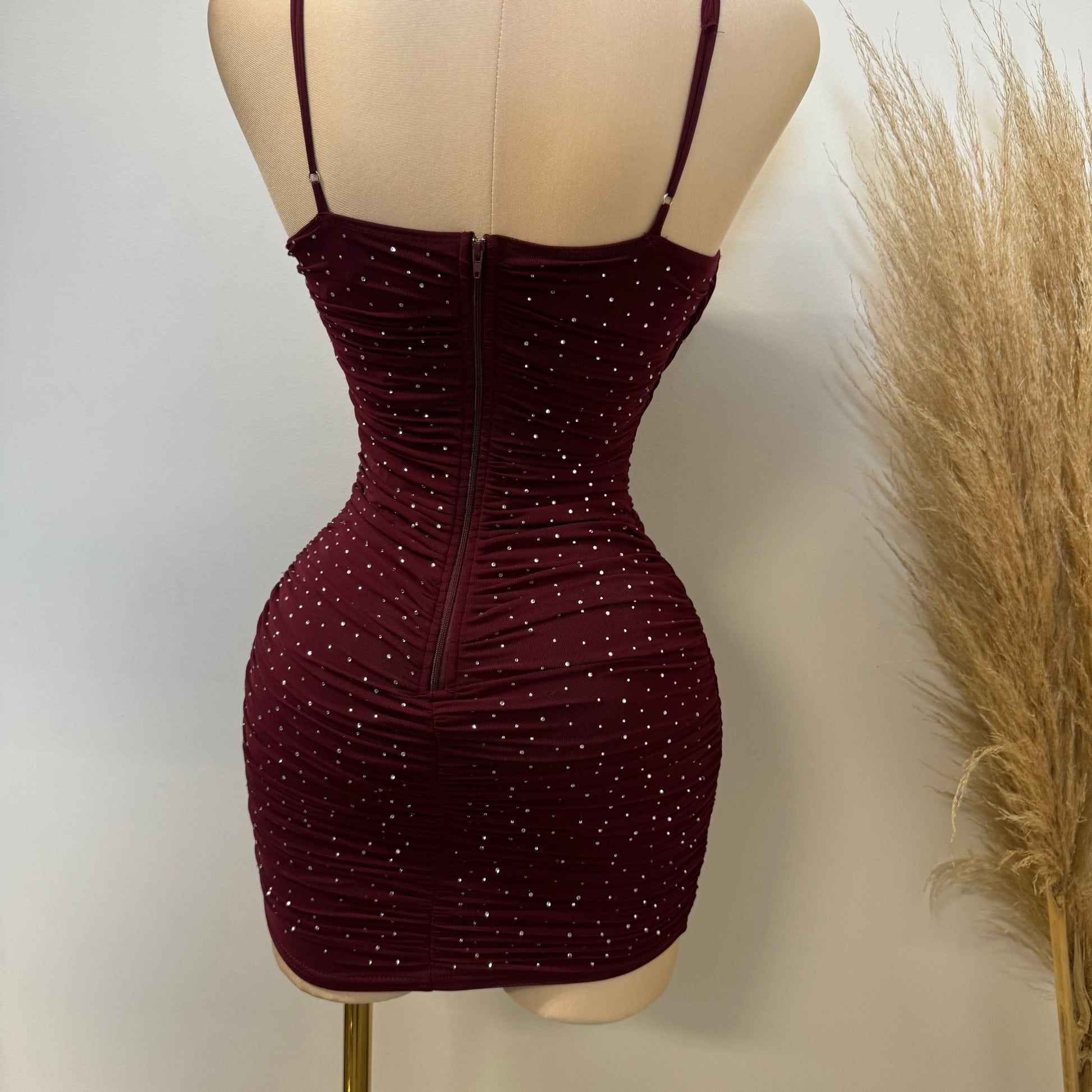 Ruby Rhinestone Dress-Burgundy