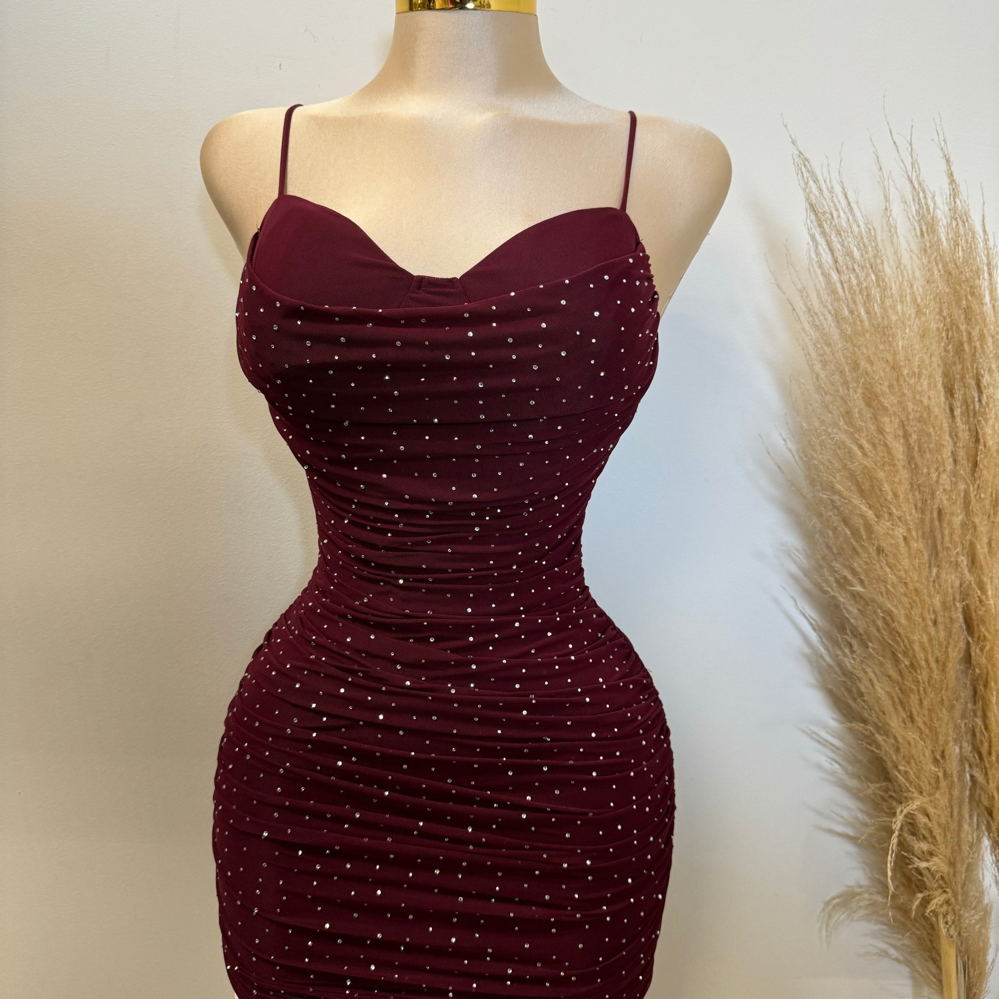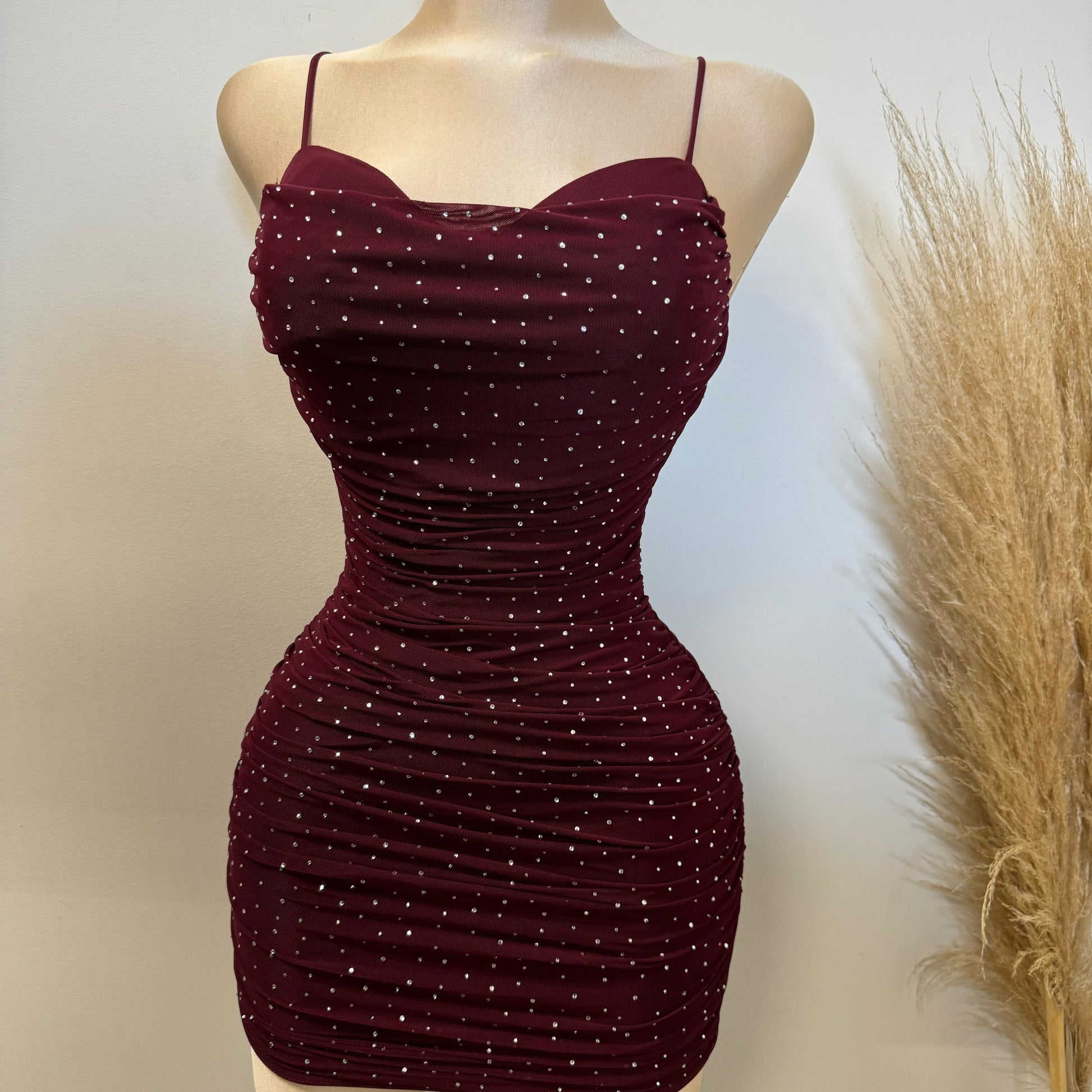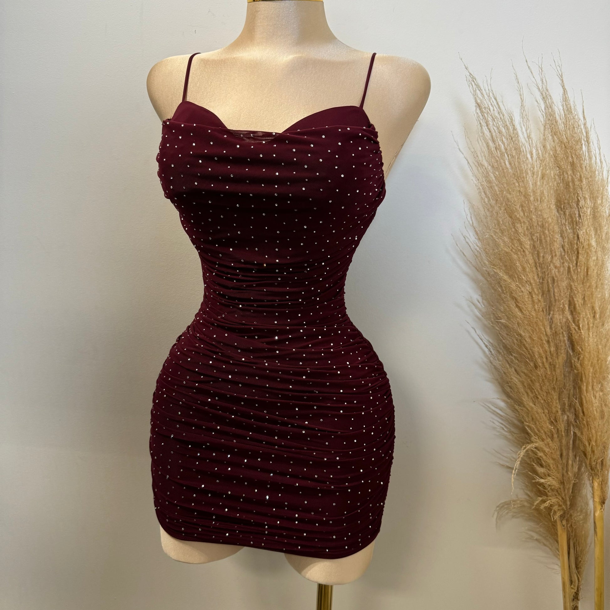 Ruby Rhinestone Dress-Burgundy