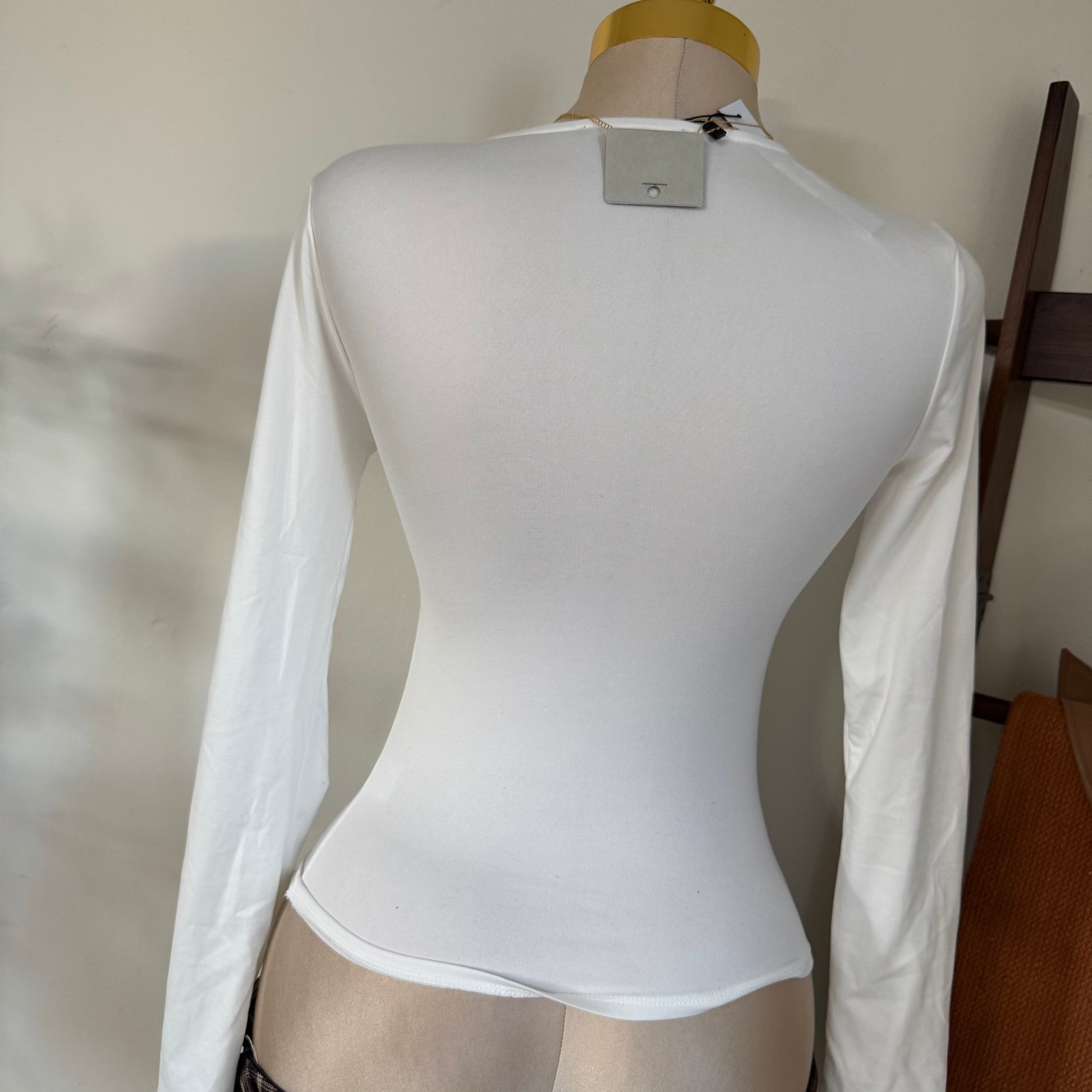 Ruched V-Neck Long Sleeve Double Layered Top-White