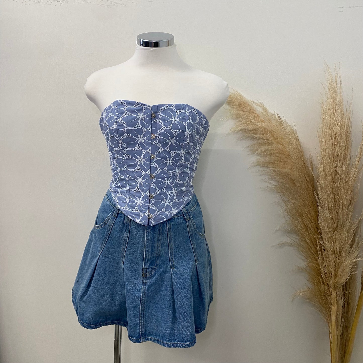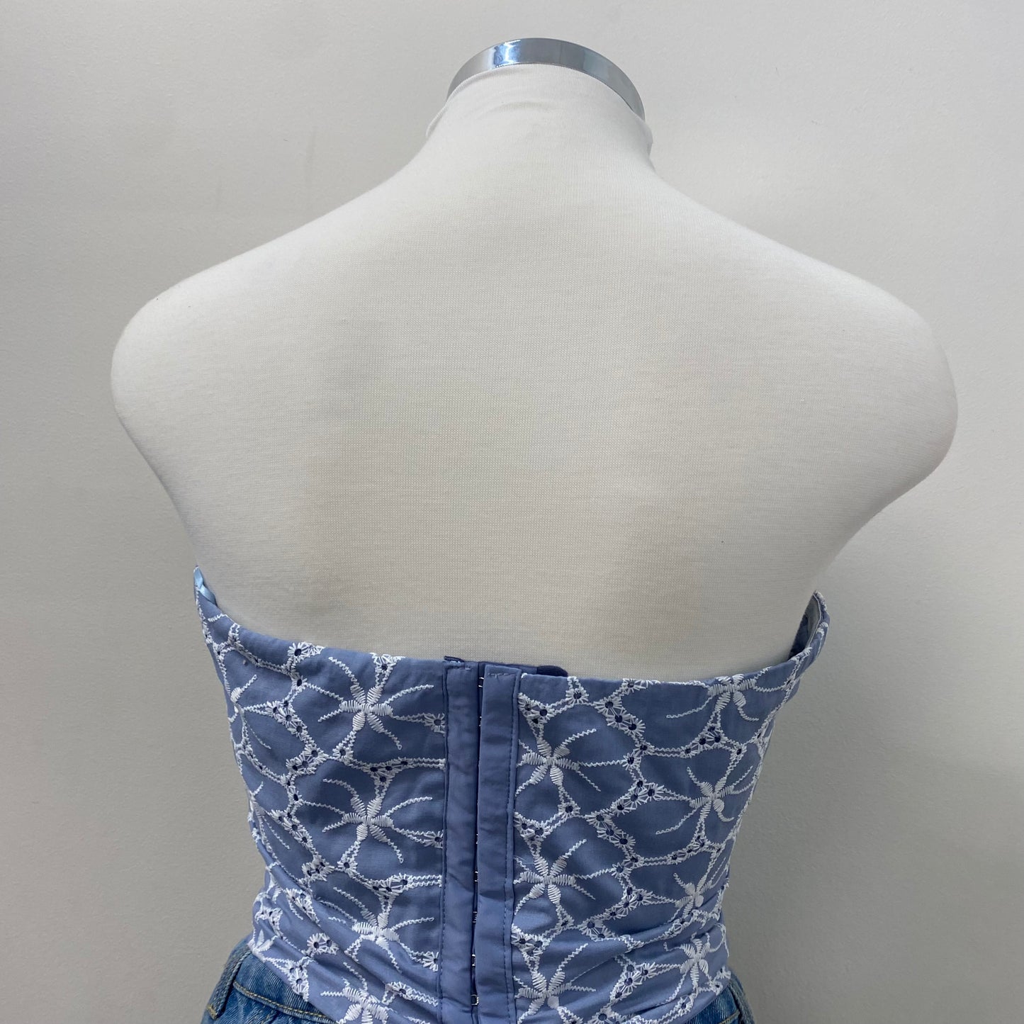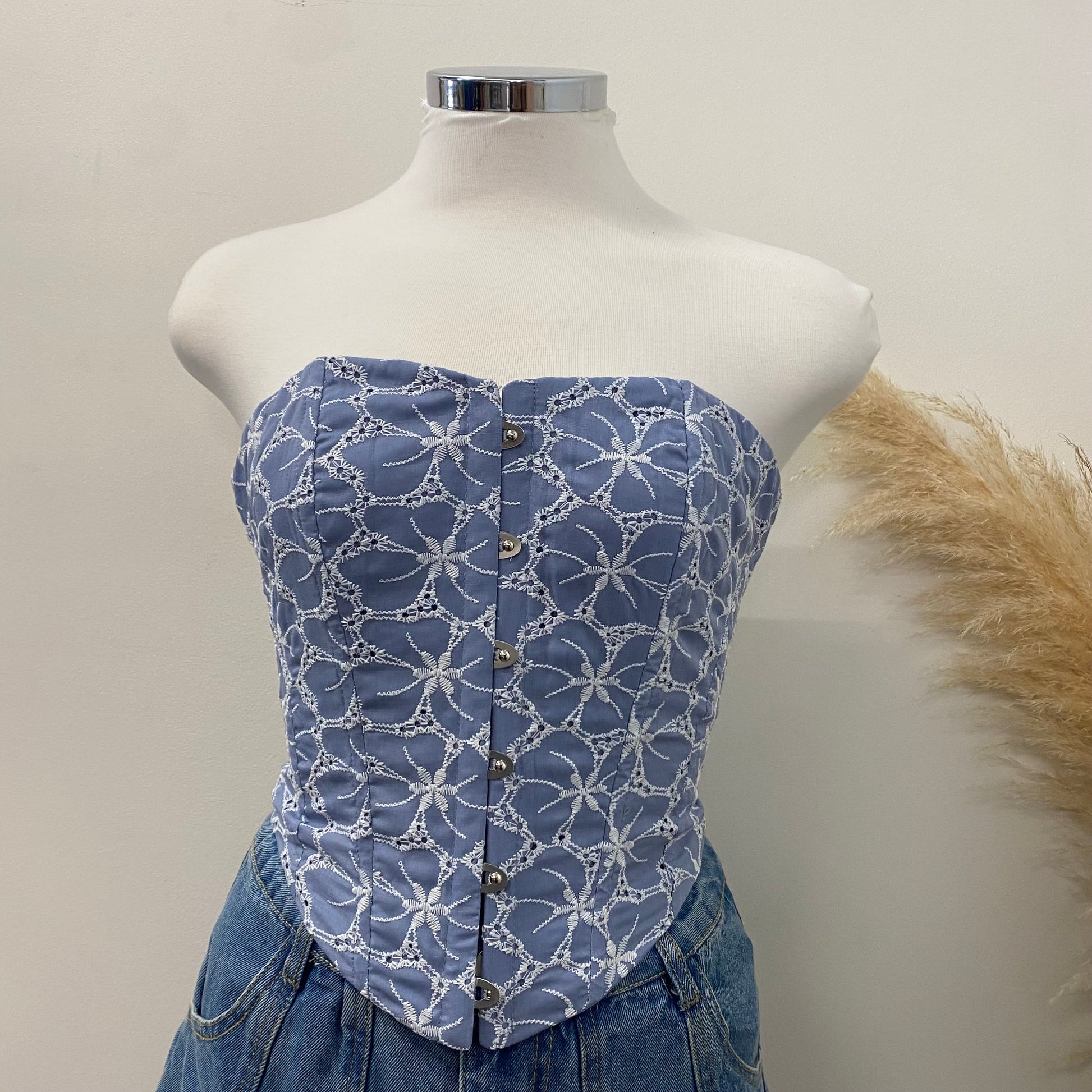 -Embroidered eyelet corset sleeveless cropped corset