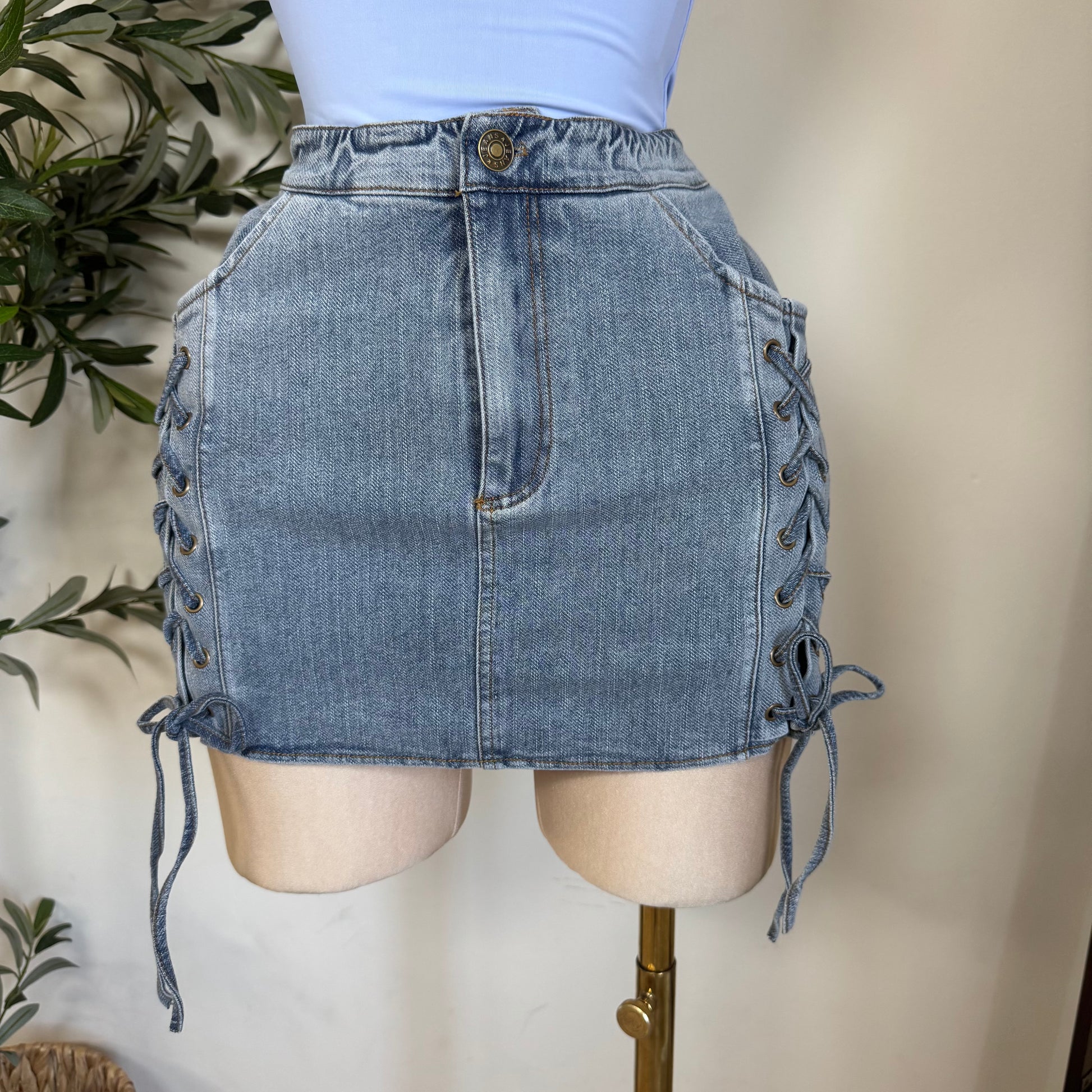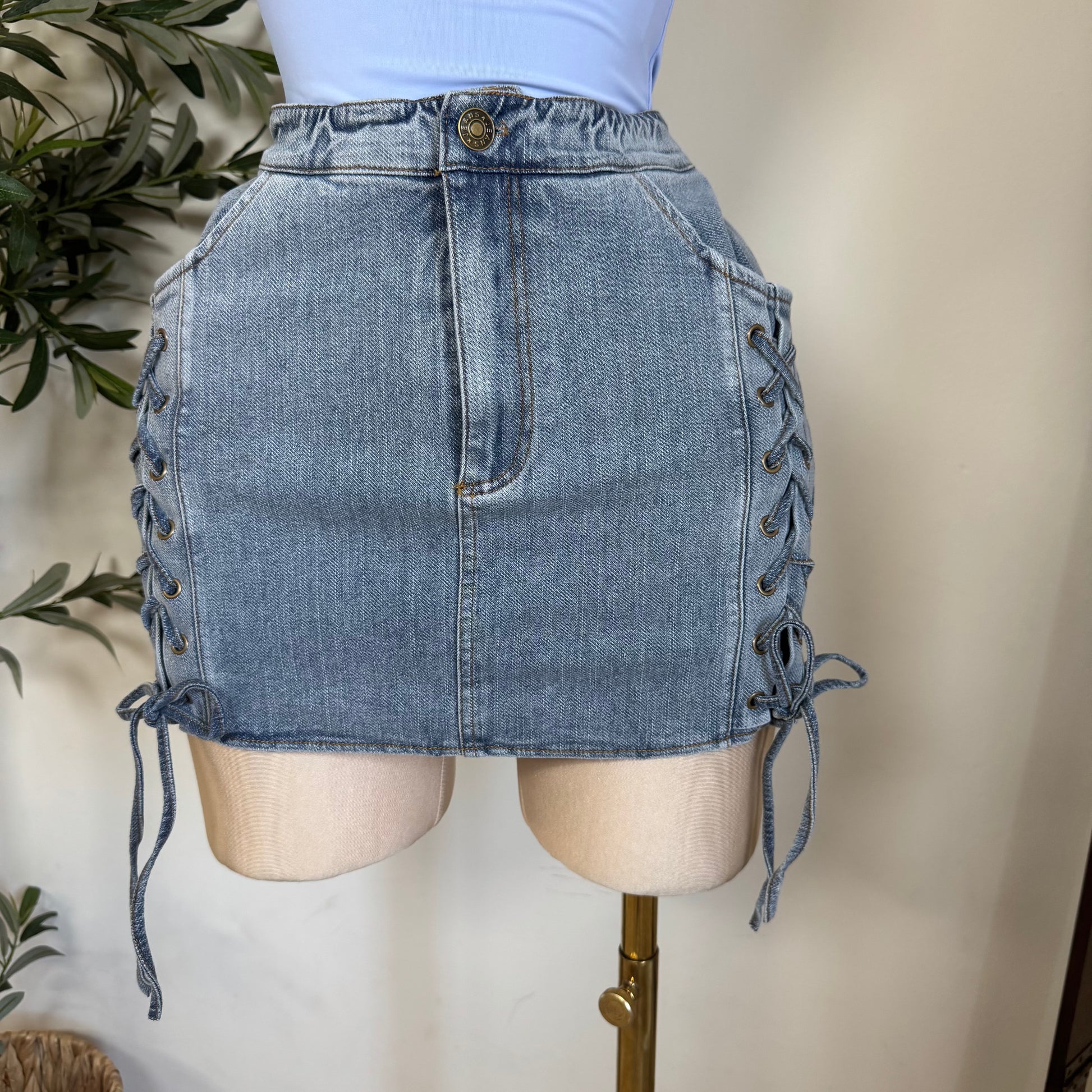 Sexy Denim Mini Skirt with short-Blue