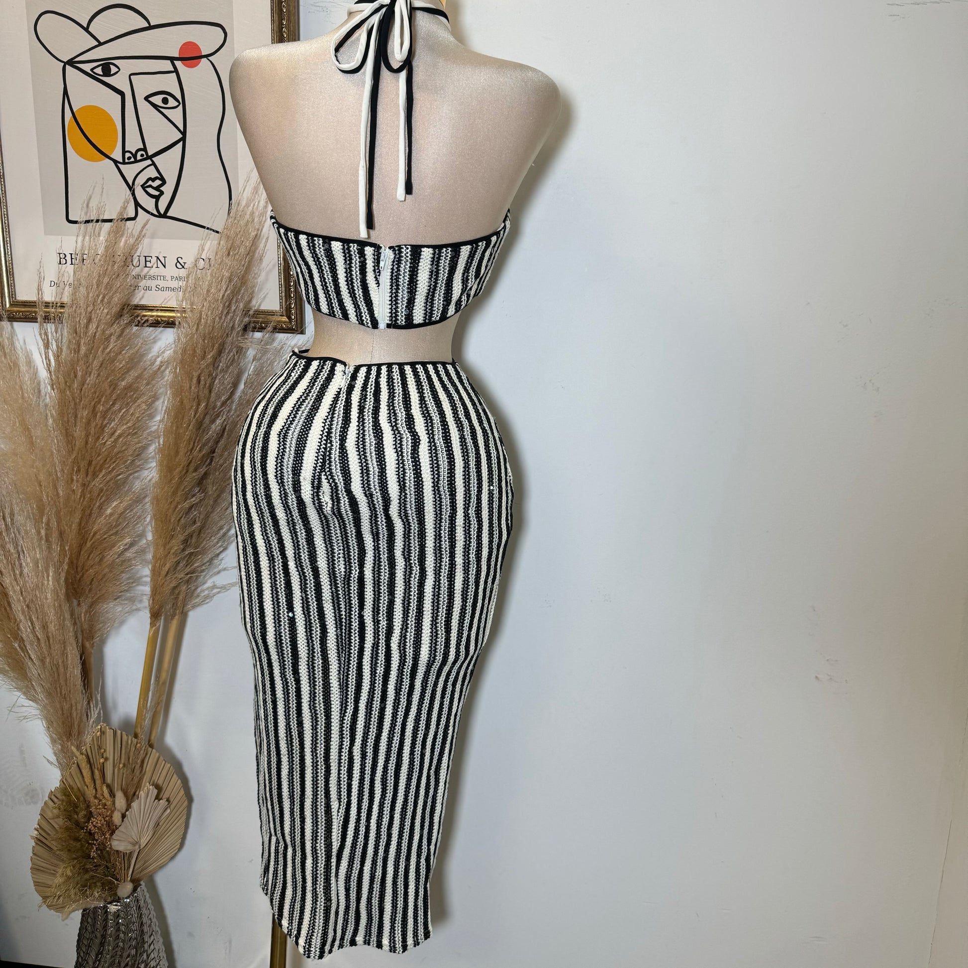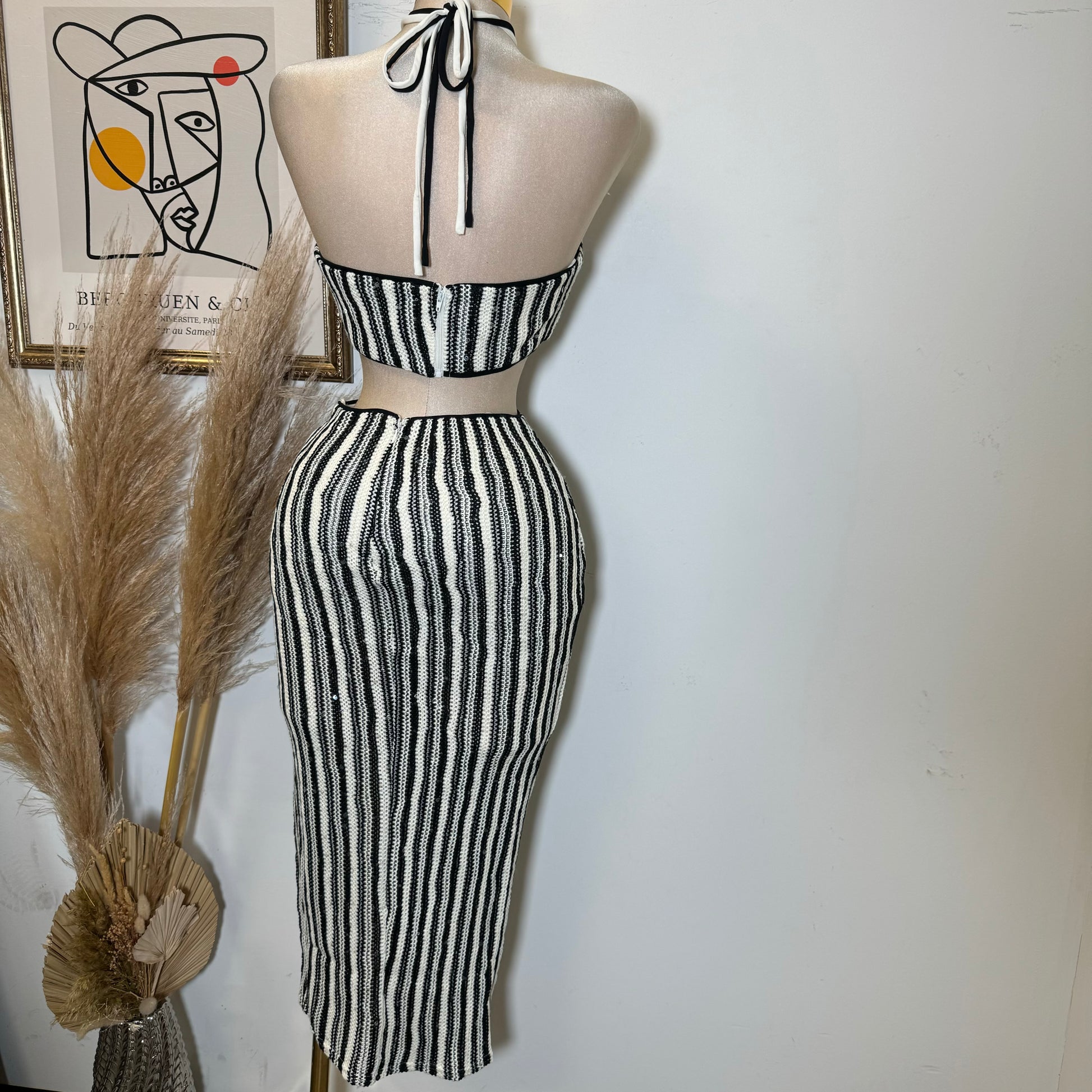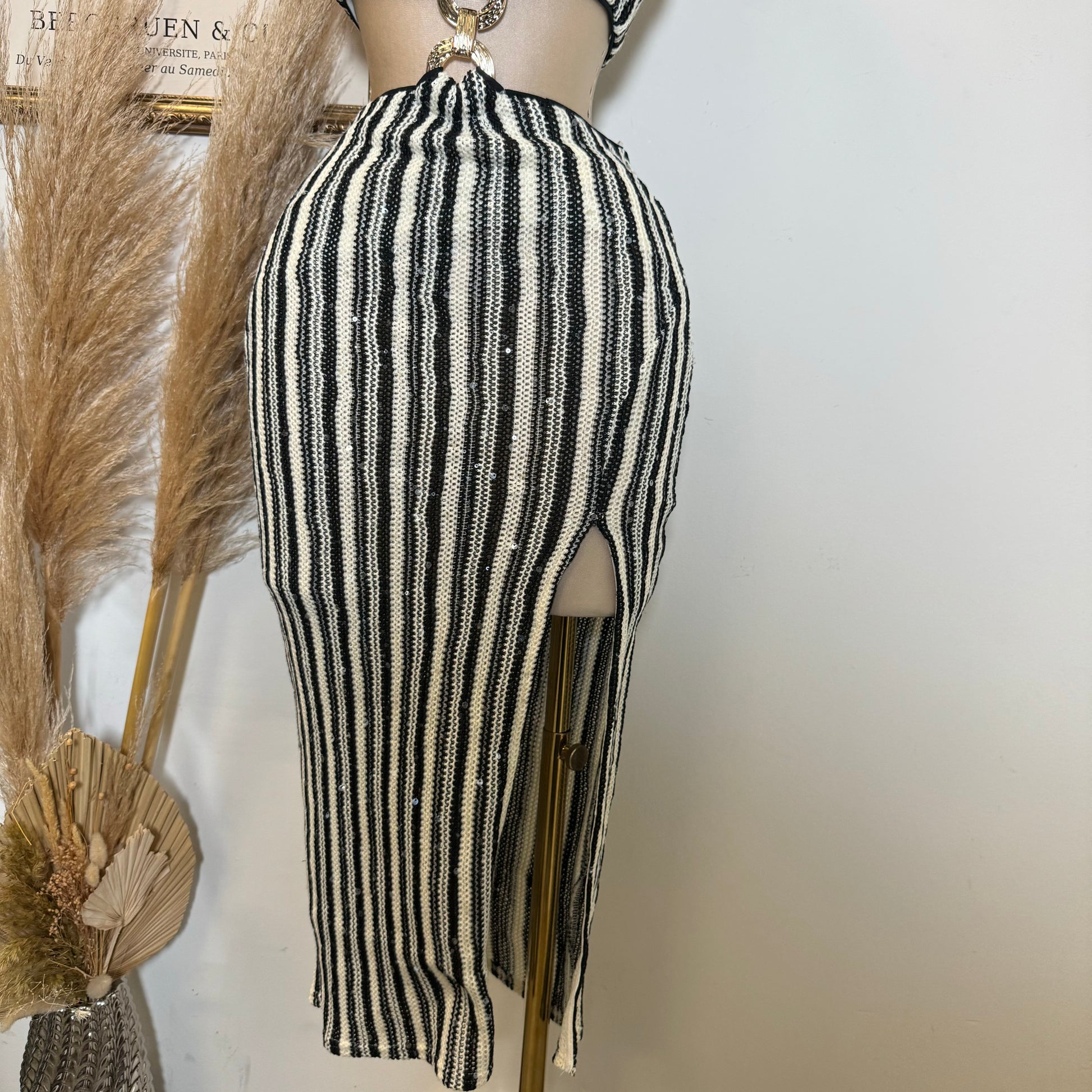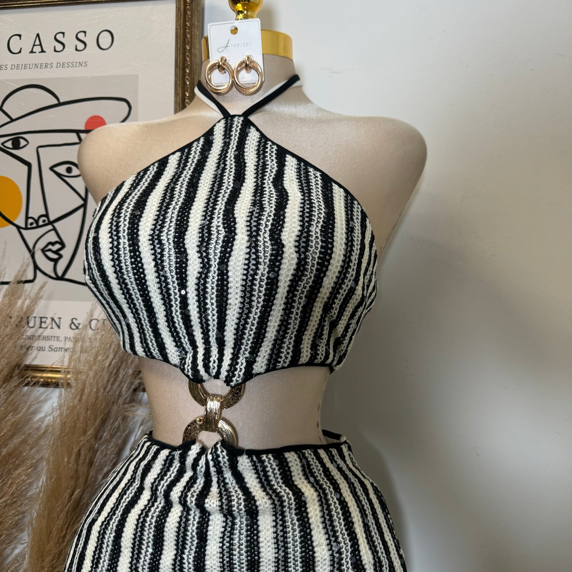 Expertly crafted midi dress featuring a sophisticated cut-out waist design and elegant tie neck detail. The solid cut and sew knit construction offers a flattering silhouette while ensuring comfort and durability. Perfect for both casual outings and semi-formal occasions, this versatile piece effortlessly elevates your wardrobe with its timeless appeal.