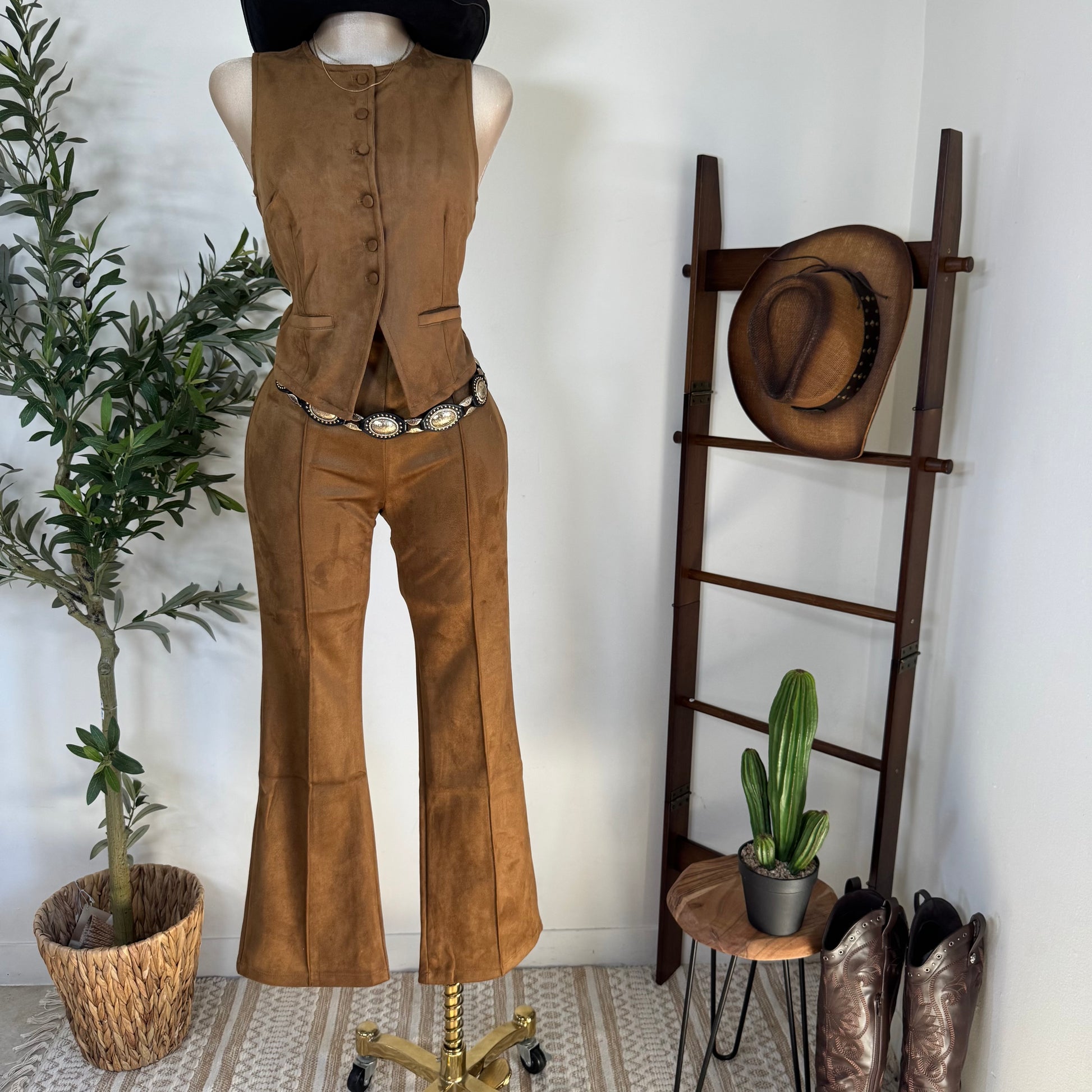 Suede Flare Pants-Tan