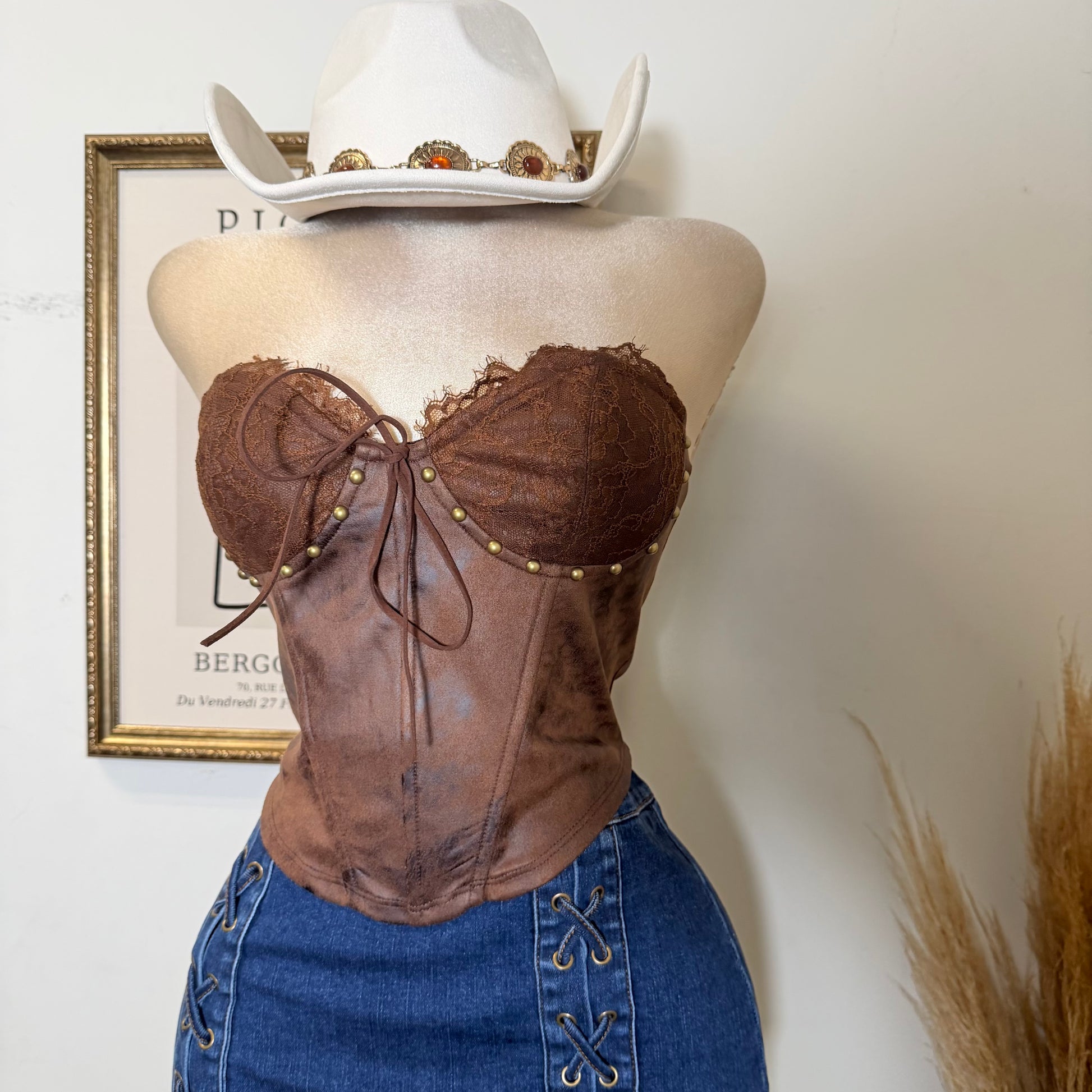 Suede Tube Top Tie Back Detail -Brown