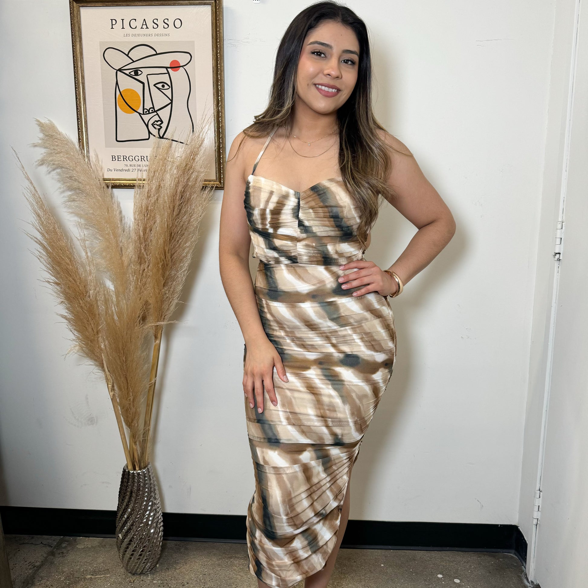 SWEETHEART SGPT LACE UP BACK RUCHIED MIDI DRESS