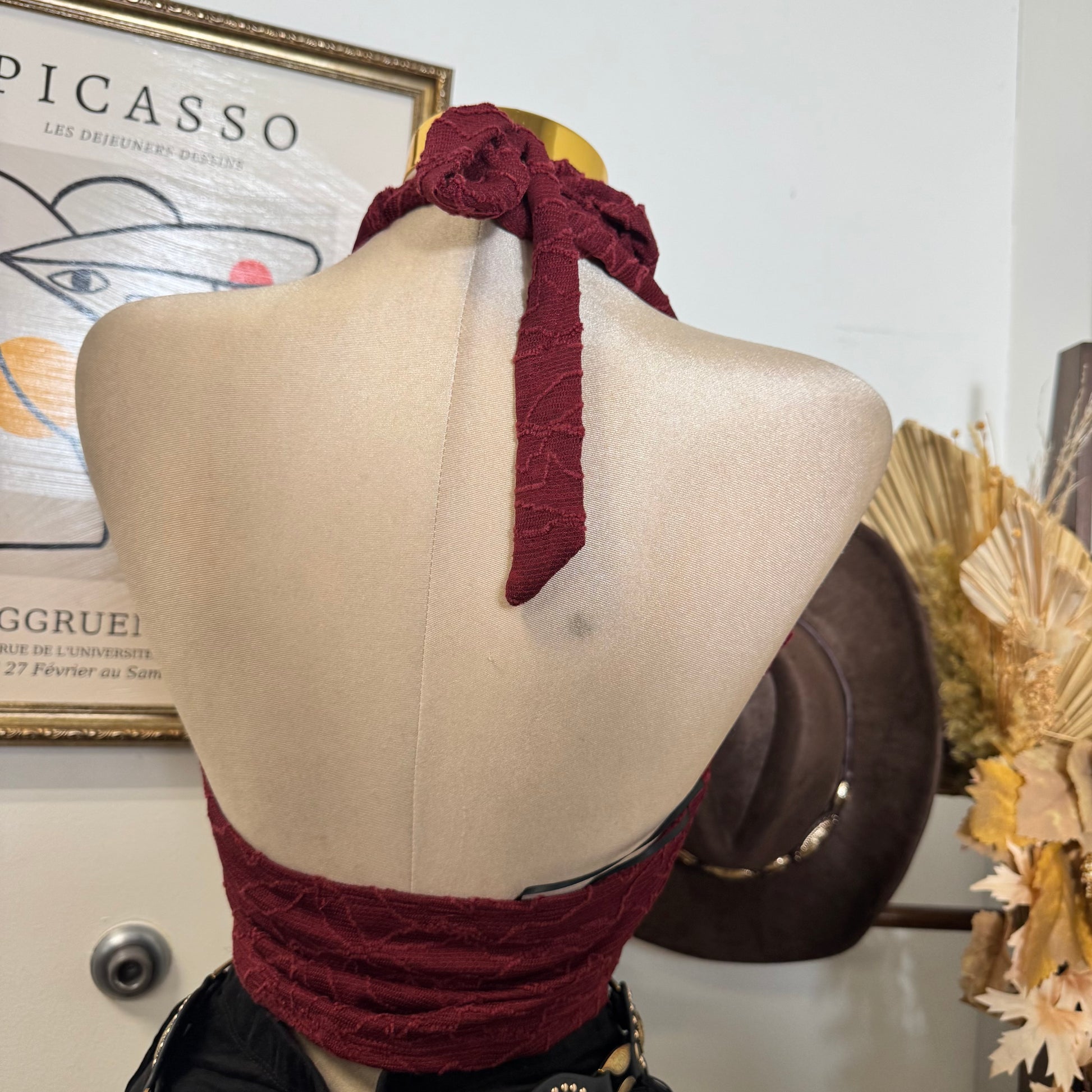 Textured Lace Halter Top-Burgundy