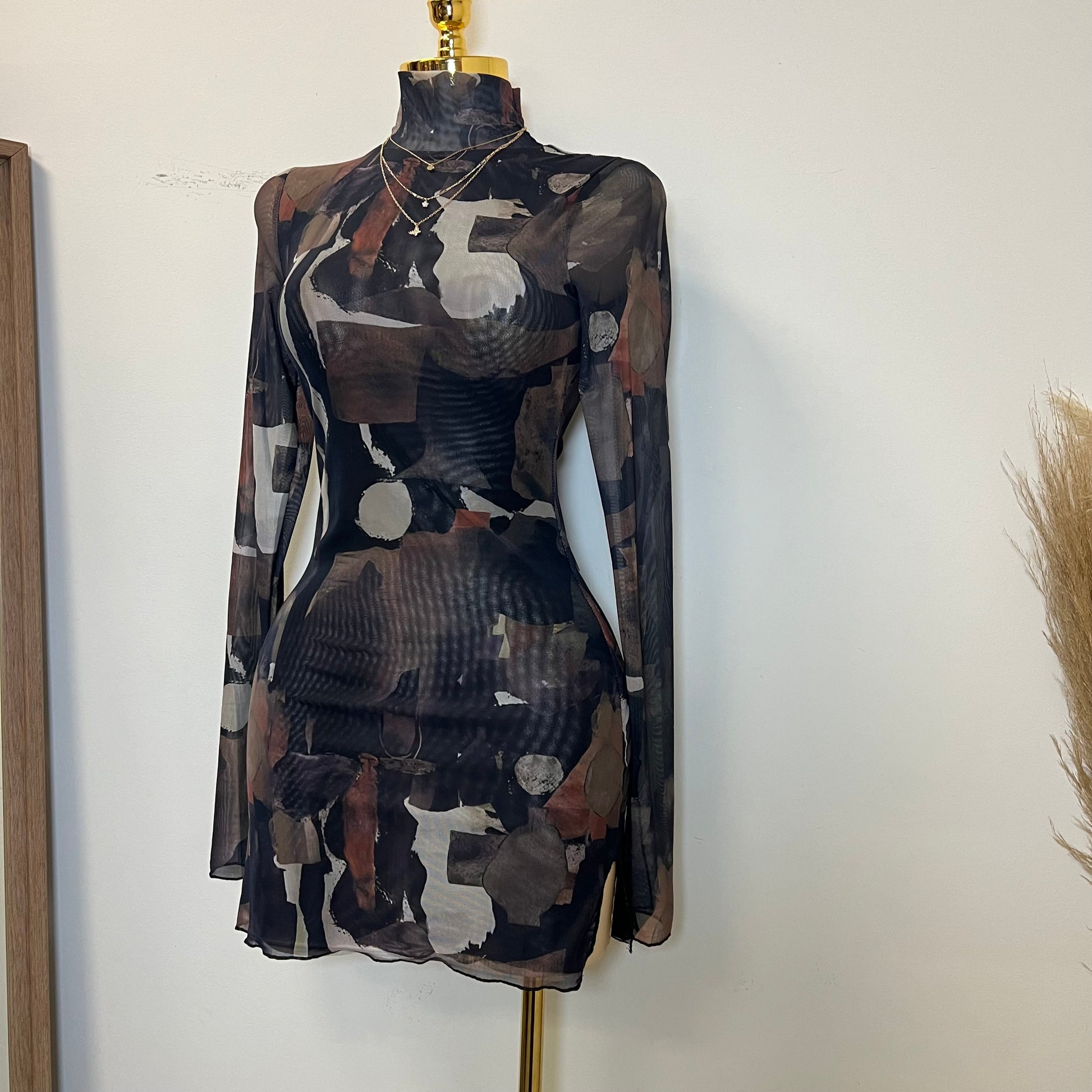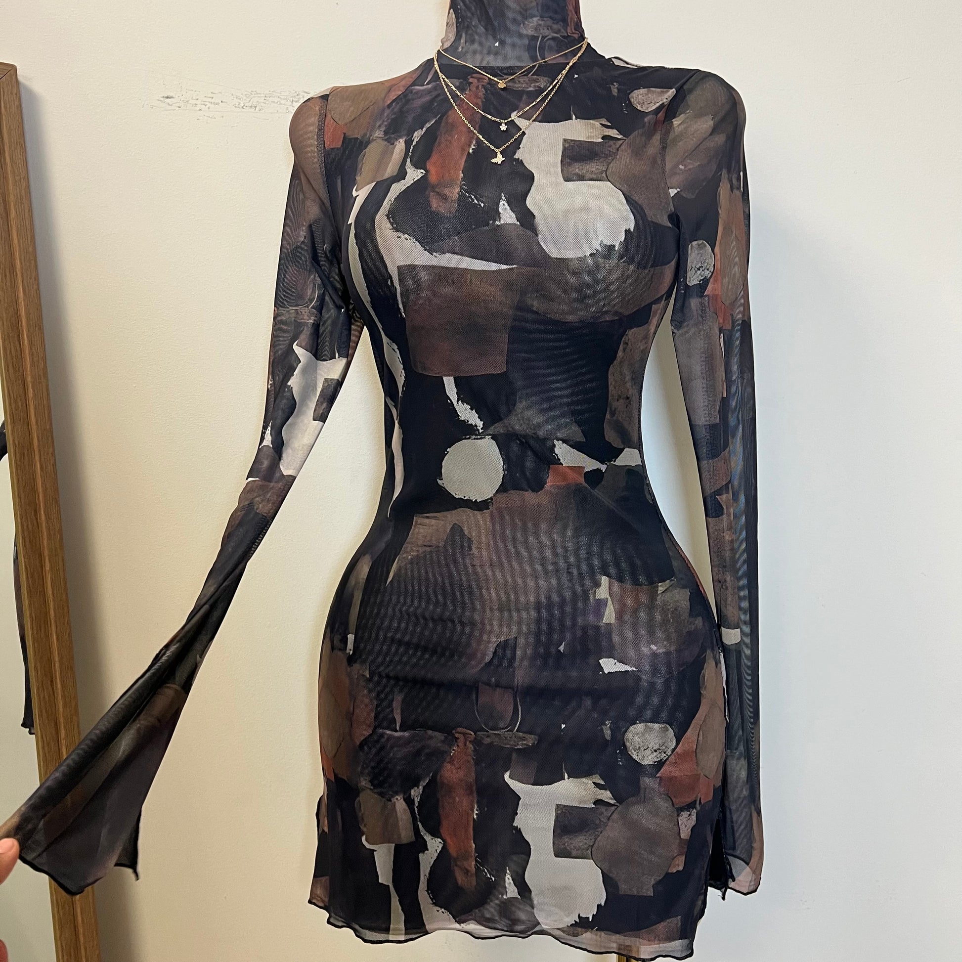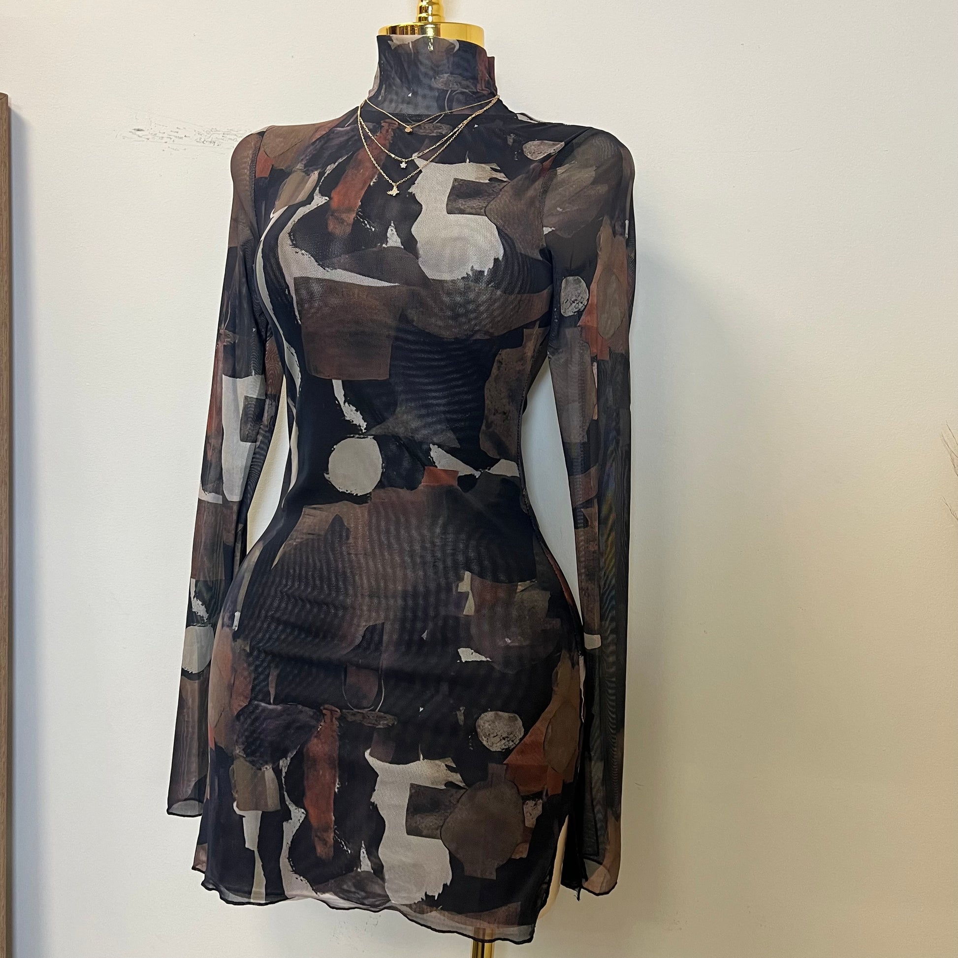 Tori Mesh Long Sleeve Dress-Multi Black