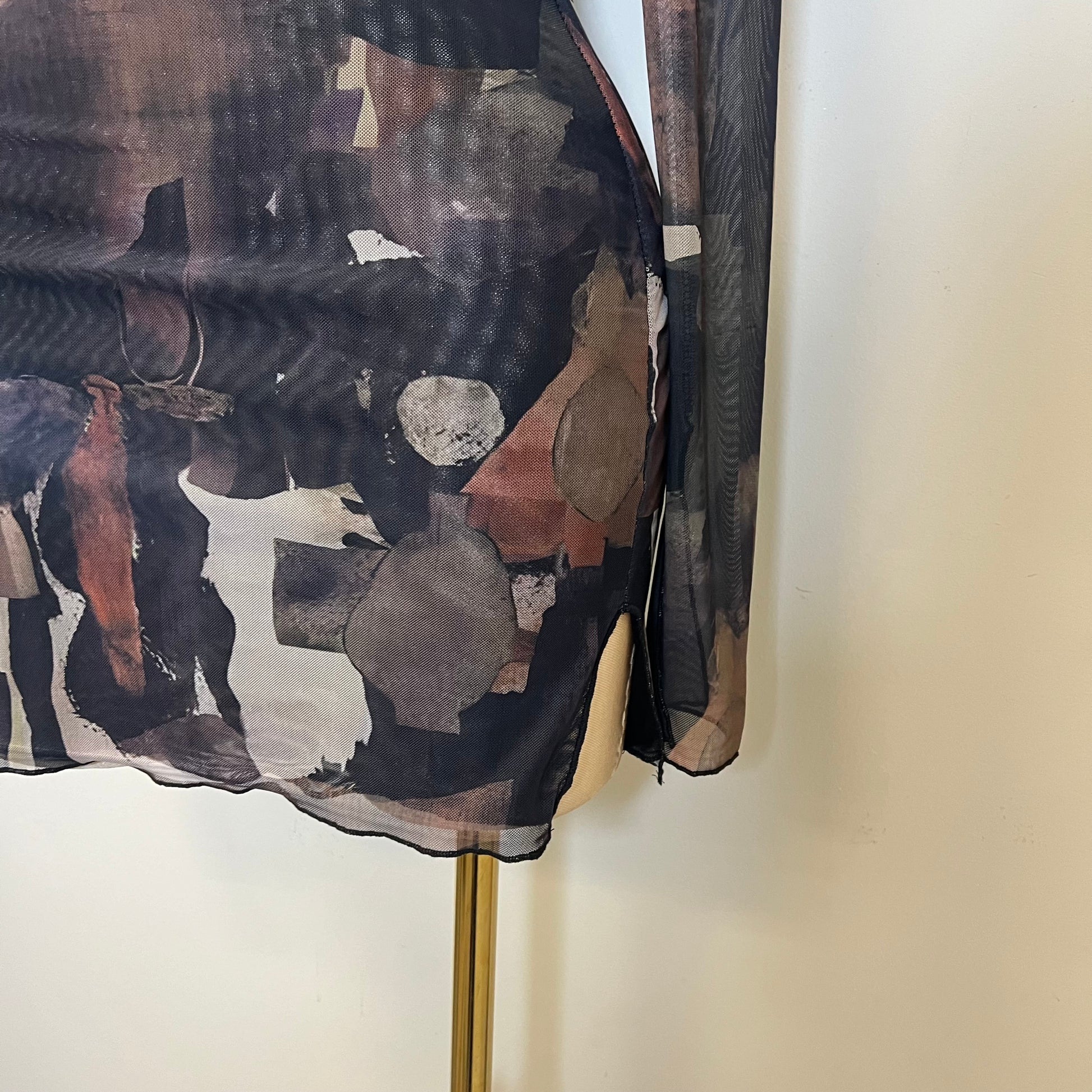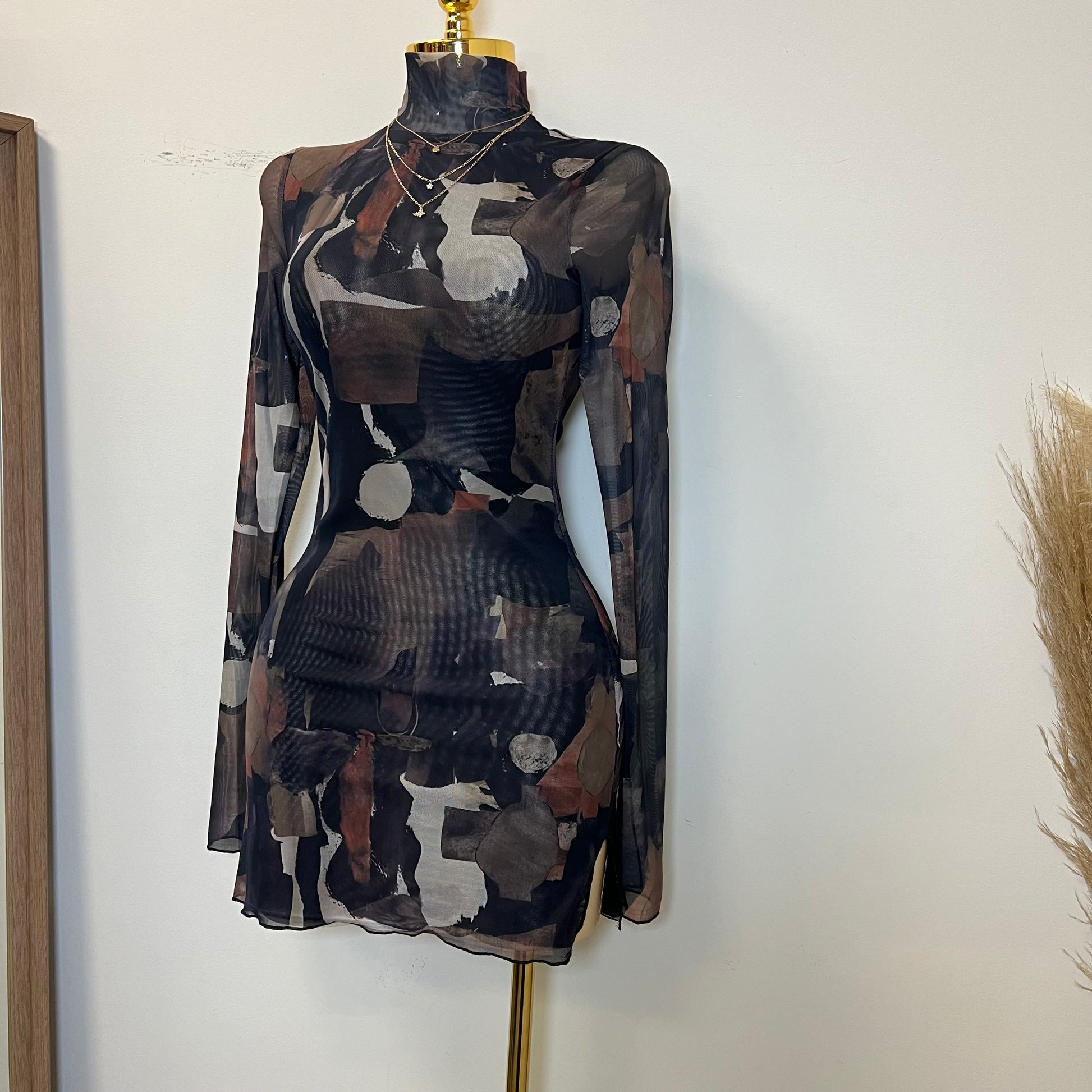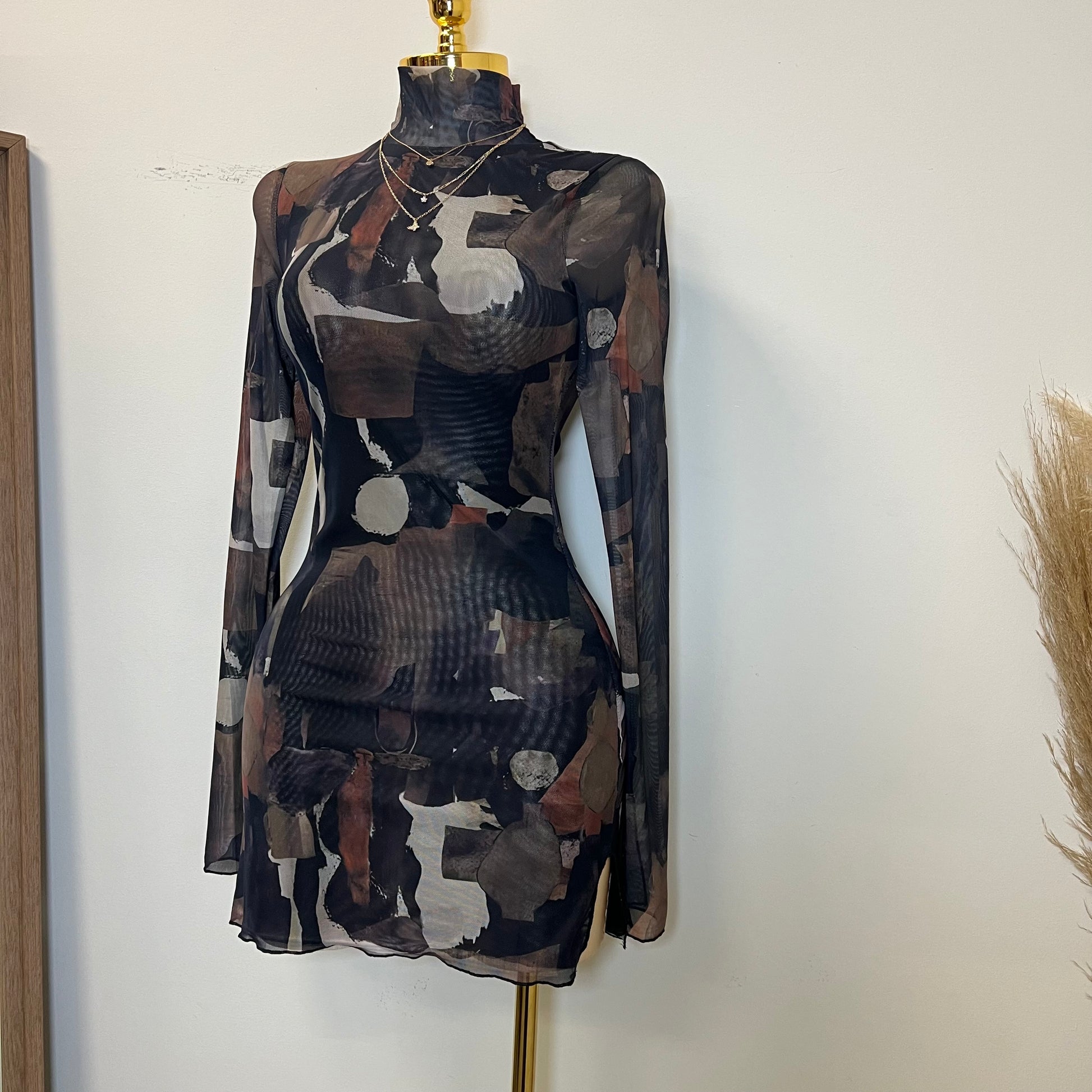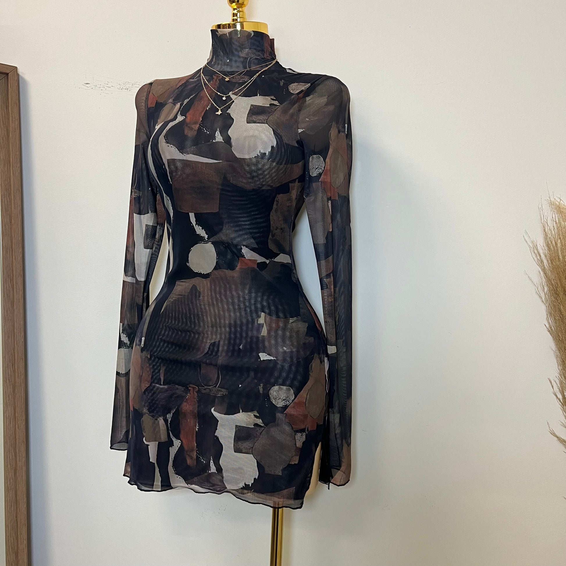 Tori Mesh Long Sleeve Dress-Multi Black