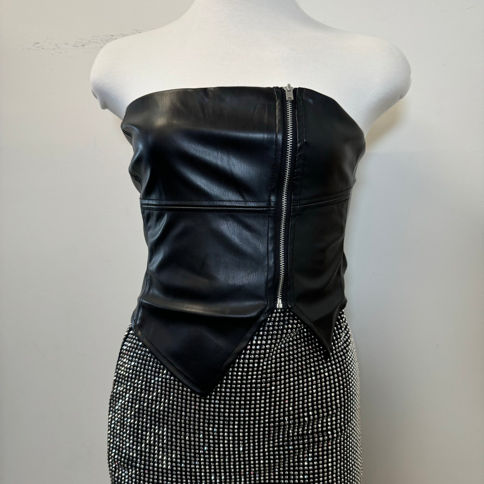 TQM Leather Corset Top-Black