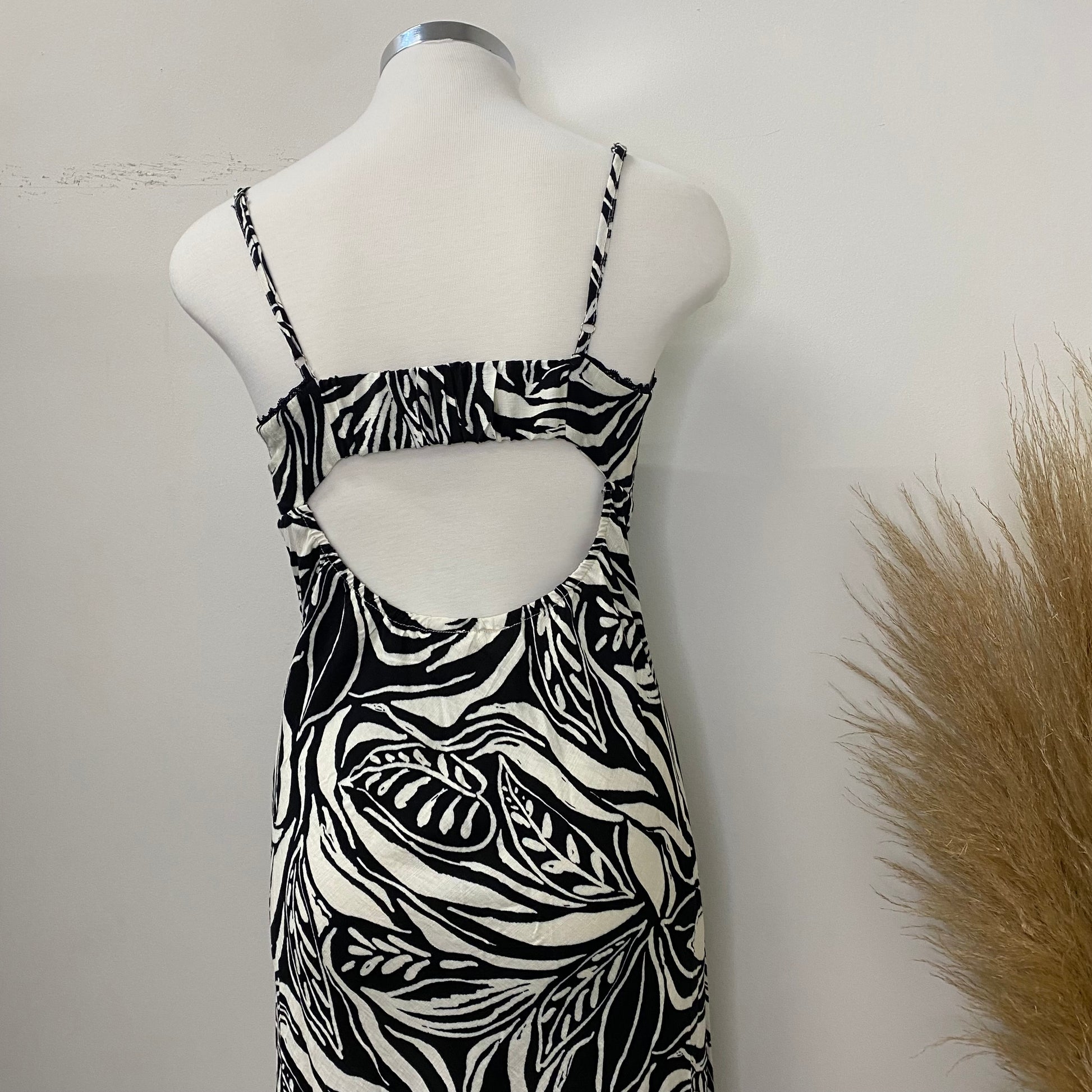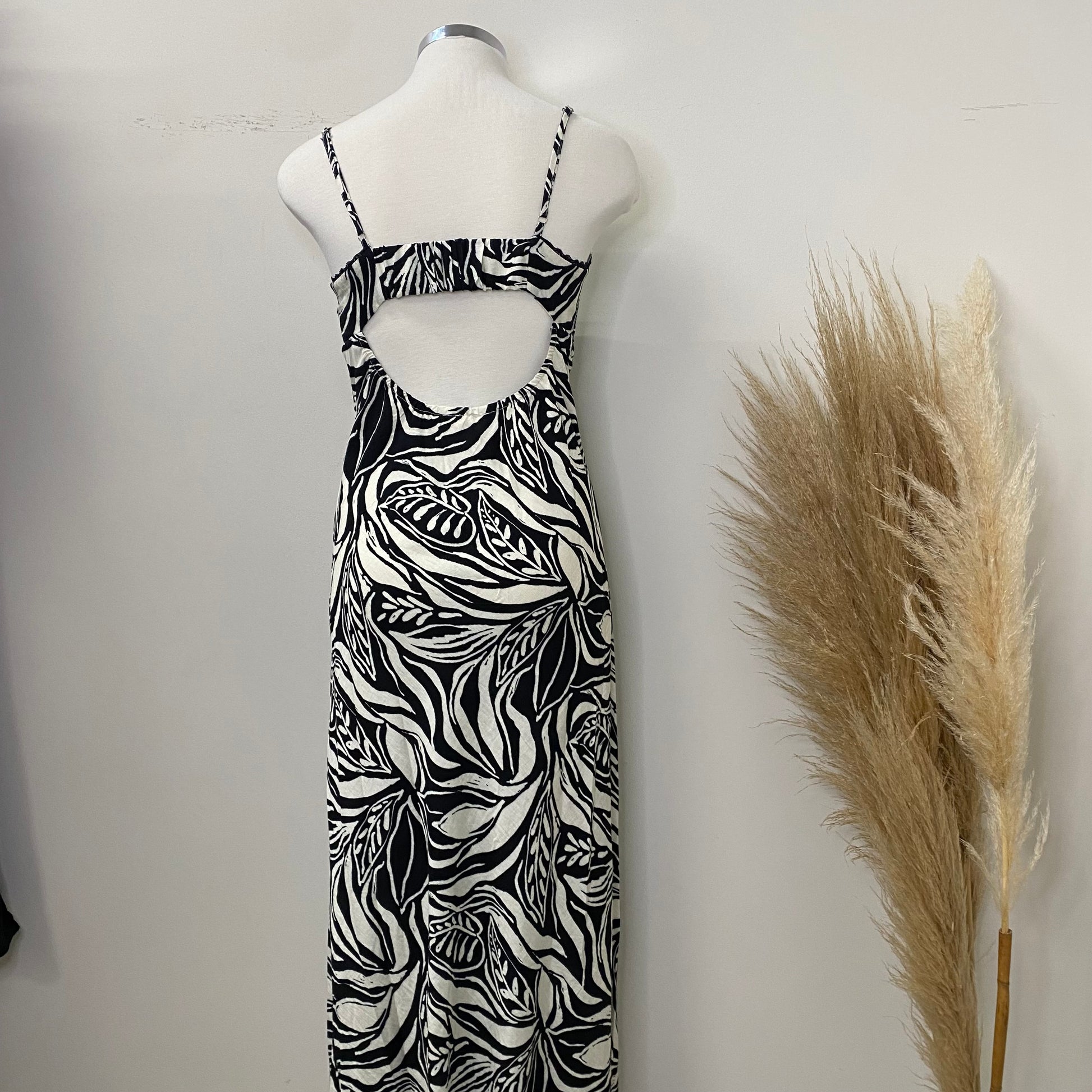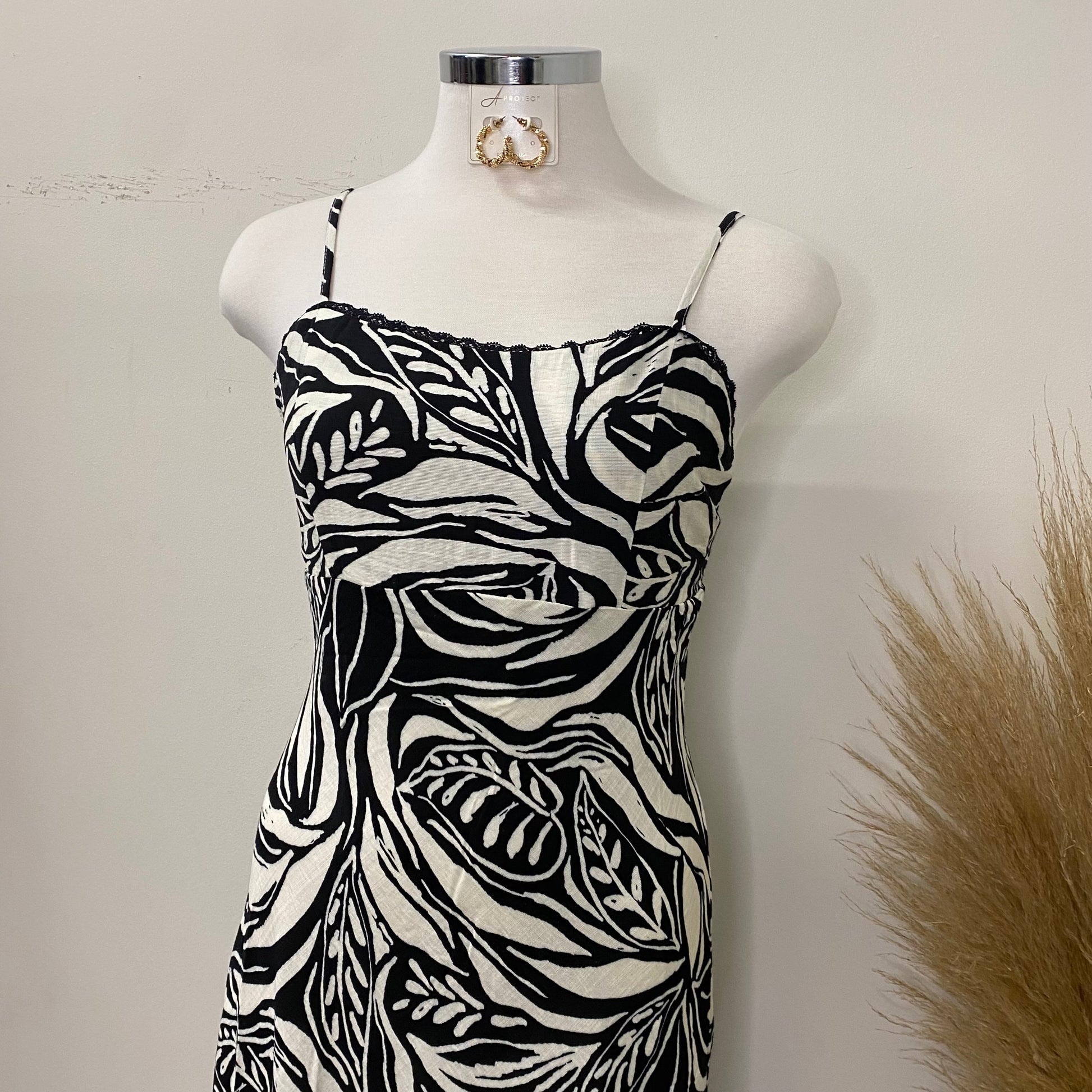 -Floral Lace Trim Back Open Slip Maxi Dress