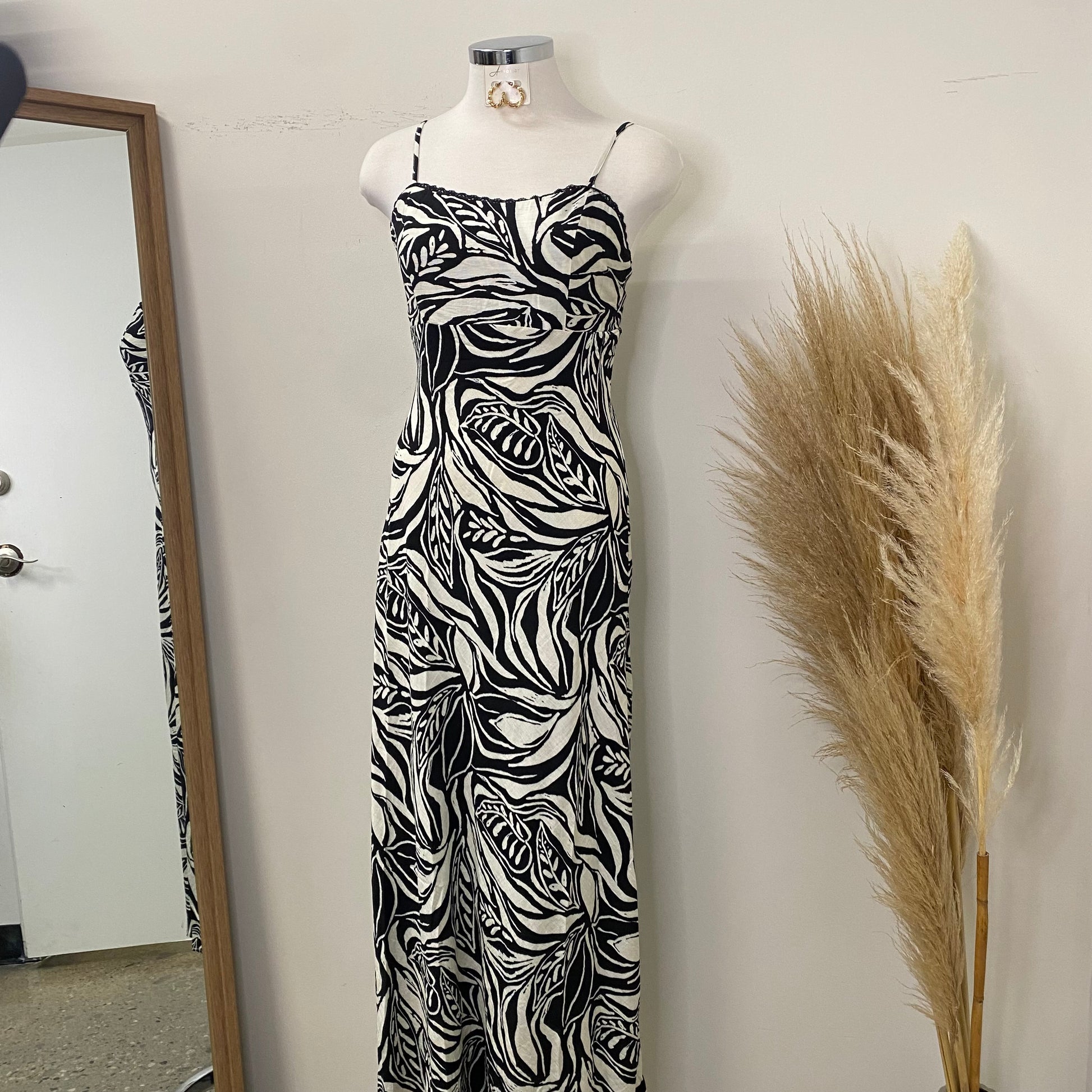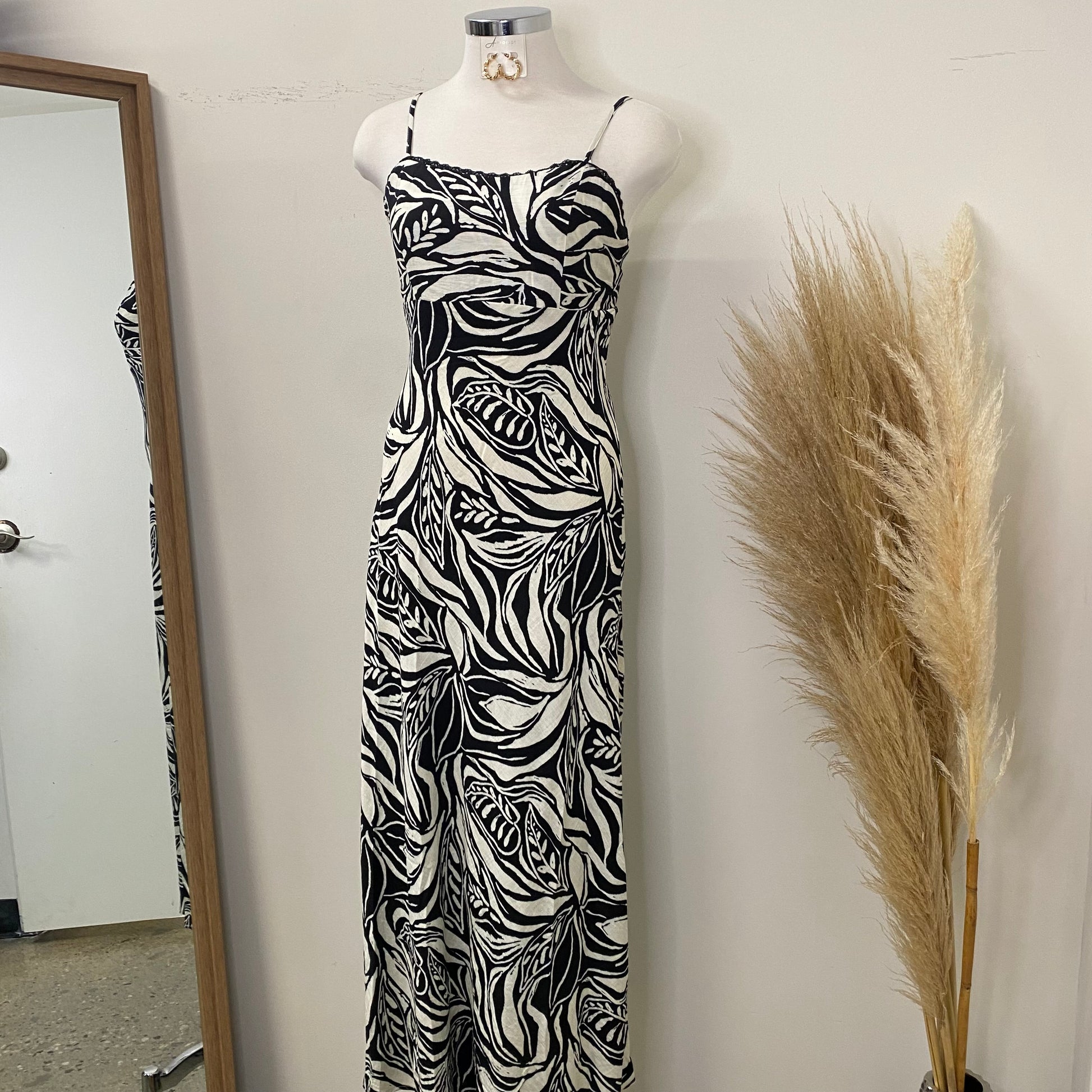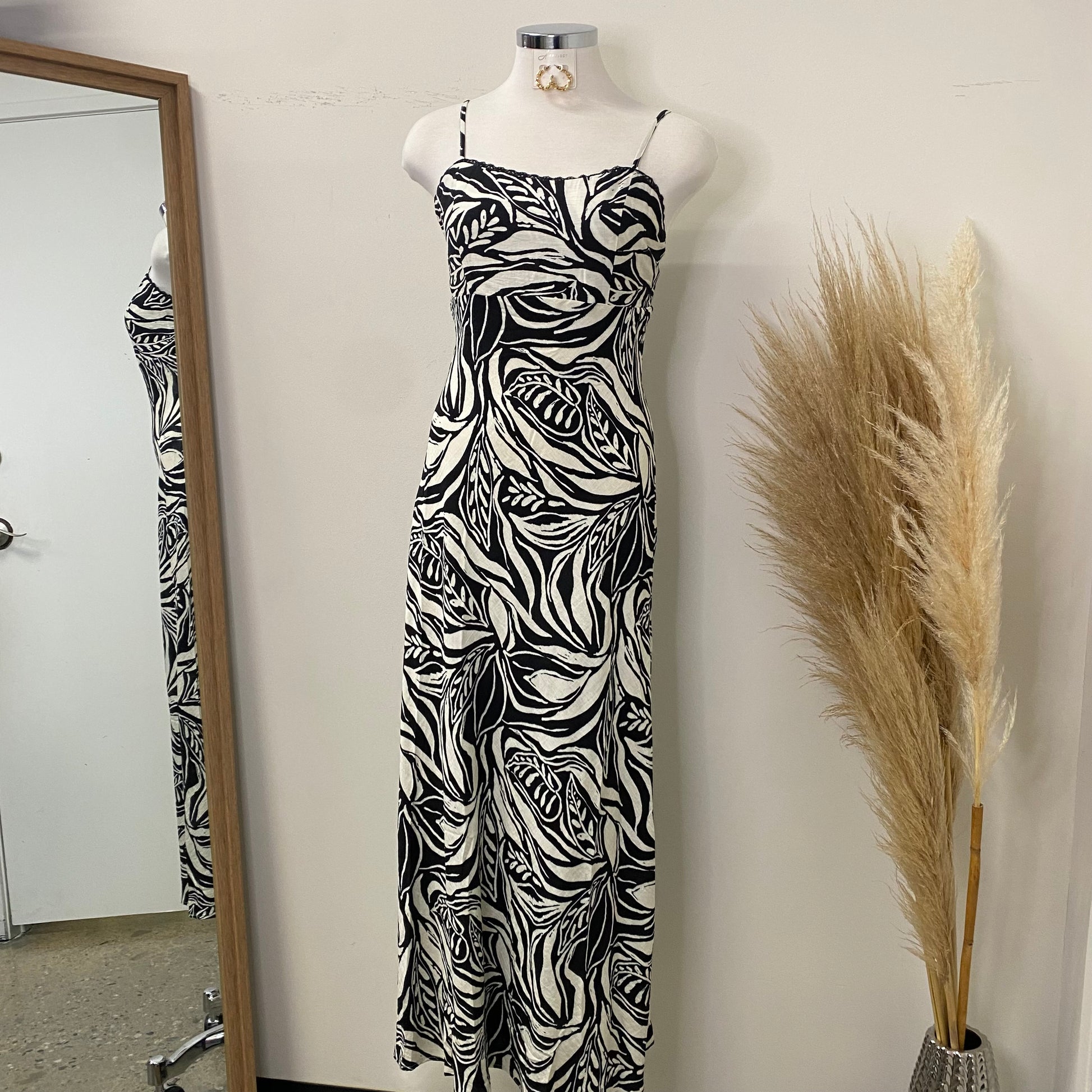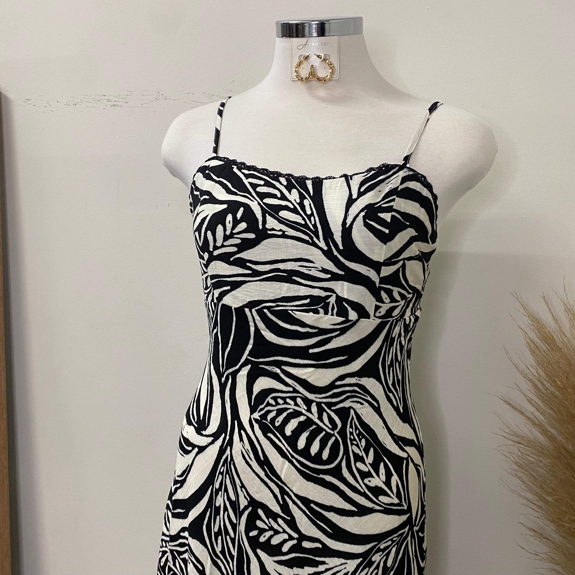 -Floral Lace Trim Back Open Slip Maxi Dress