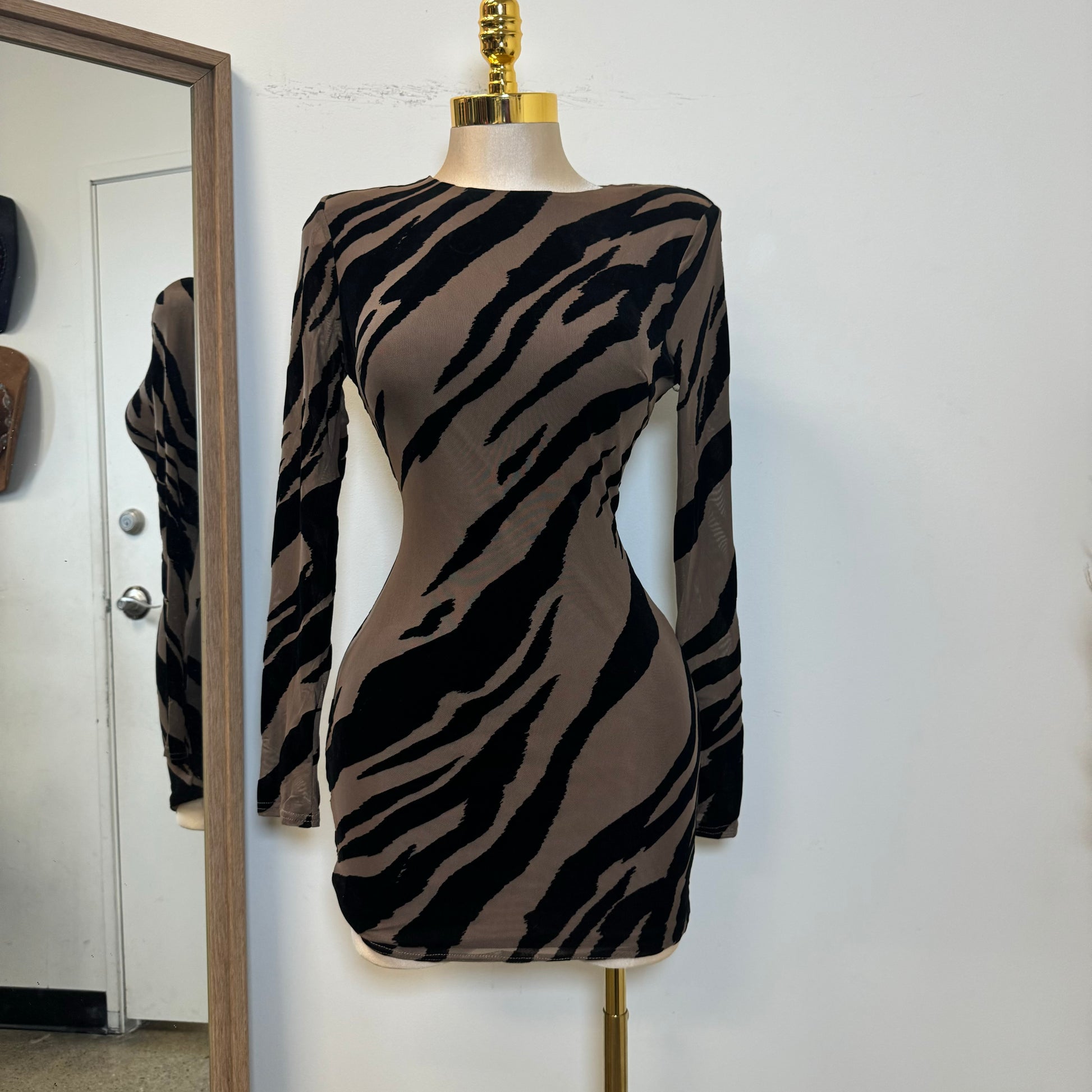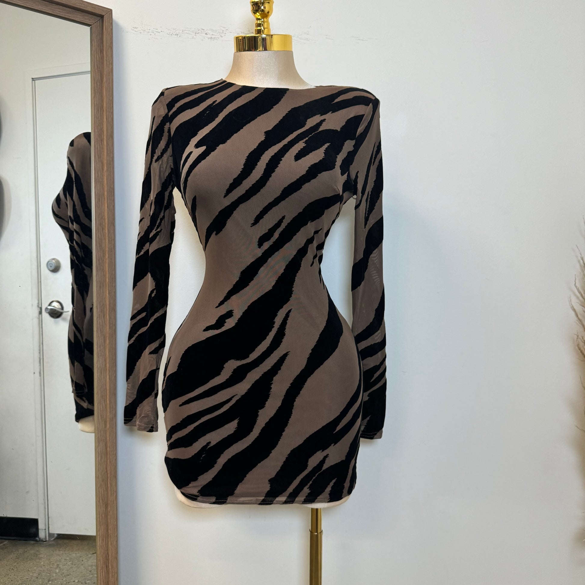Zebra Mesh Dress-Brown/Black
