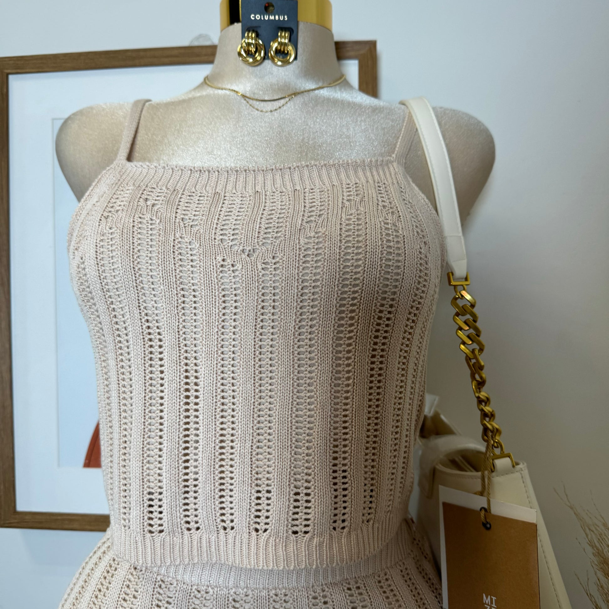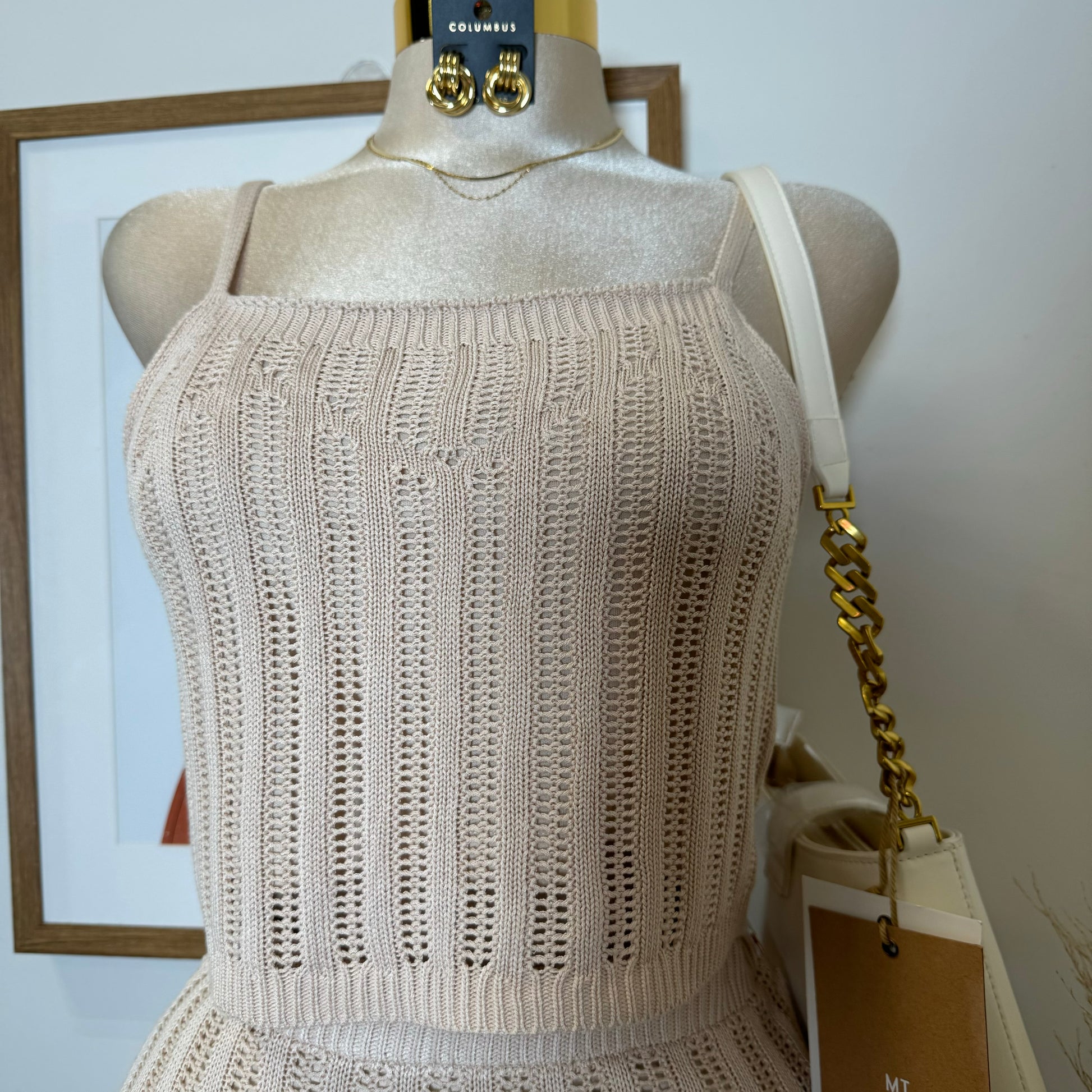 -Exudes a soft Modernity featuring a lightweight texture and breathable fabric sleeveless an elastic cropped hem.