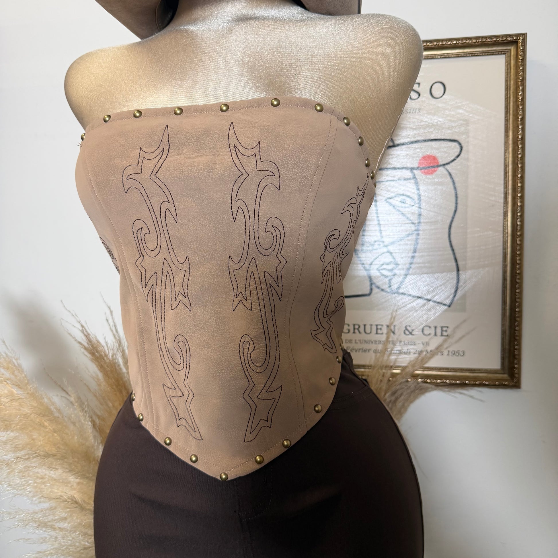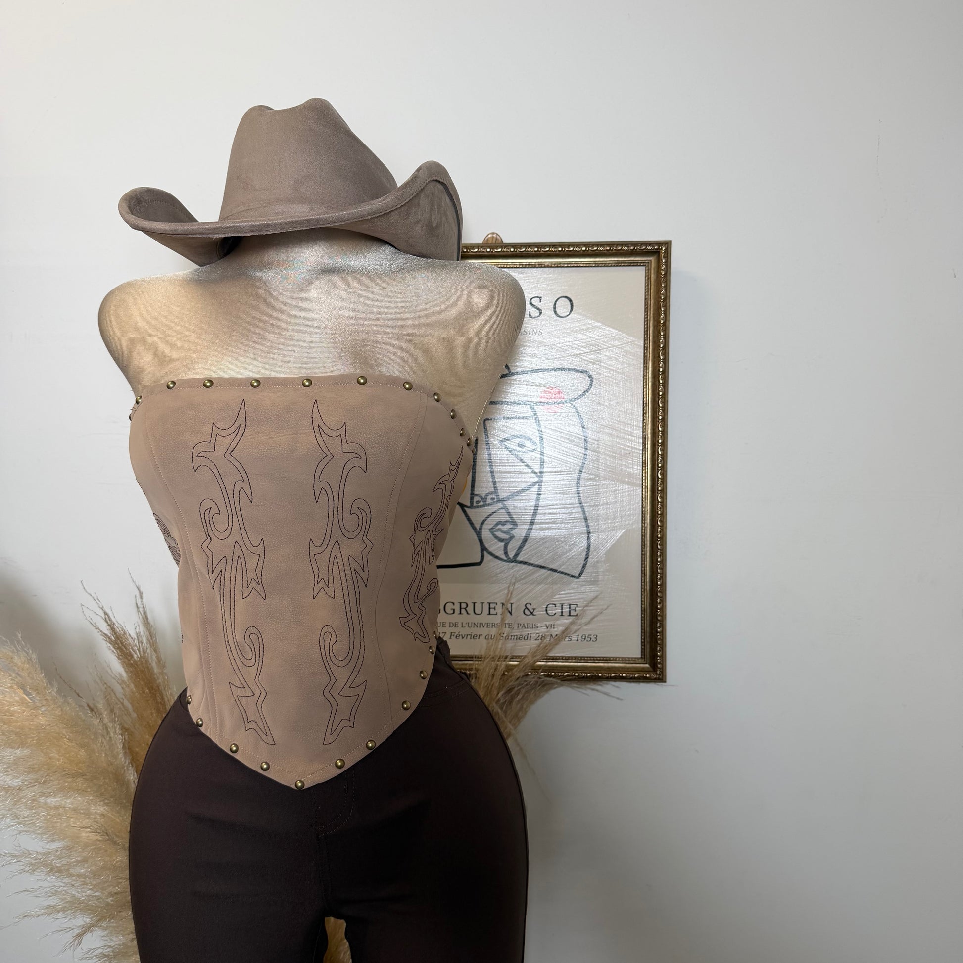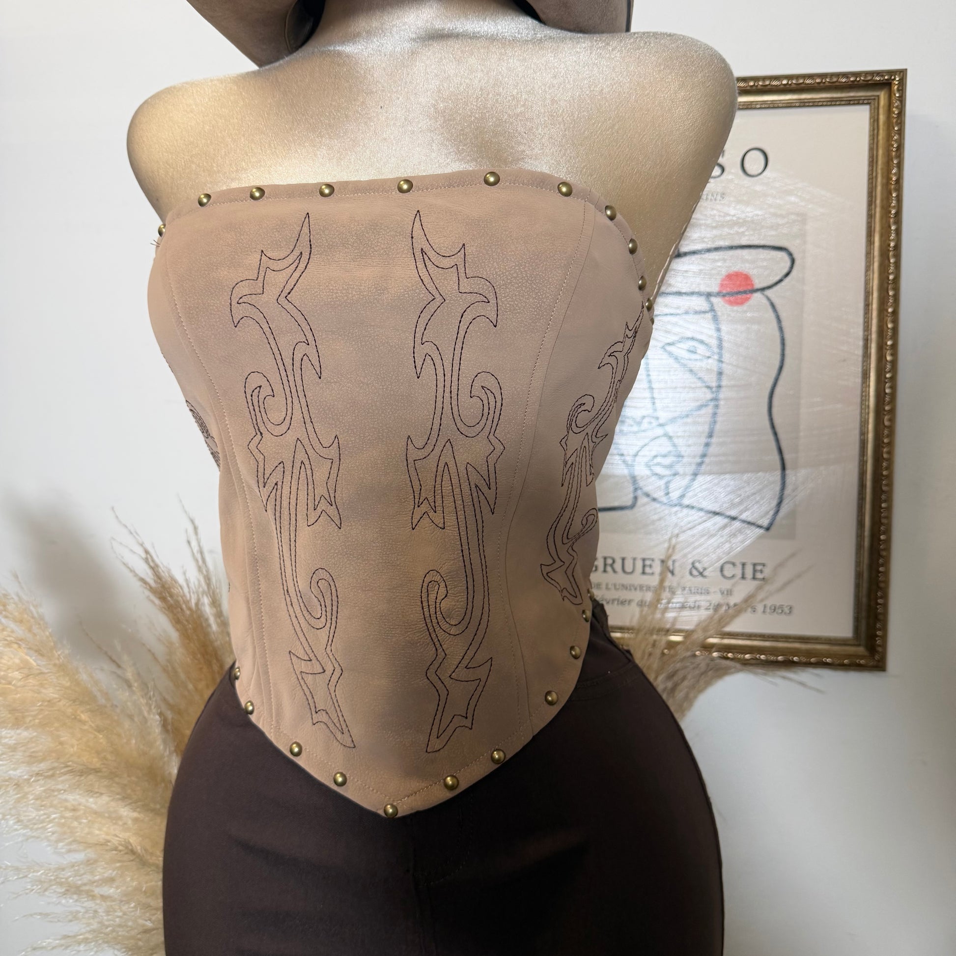 Western Lace Corset Top -Taupe