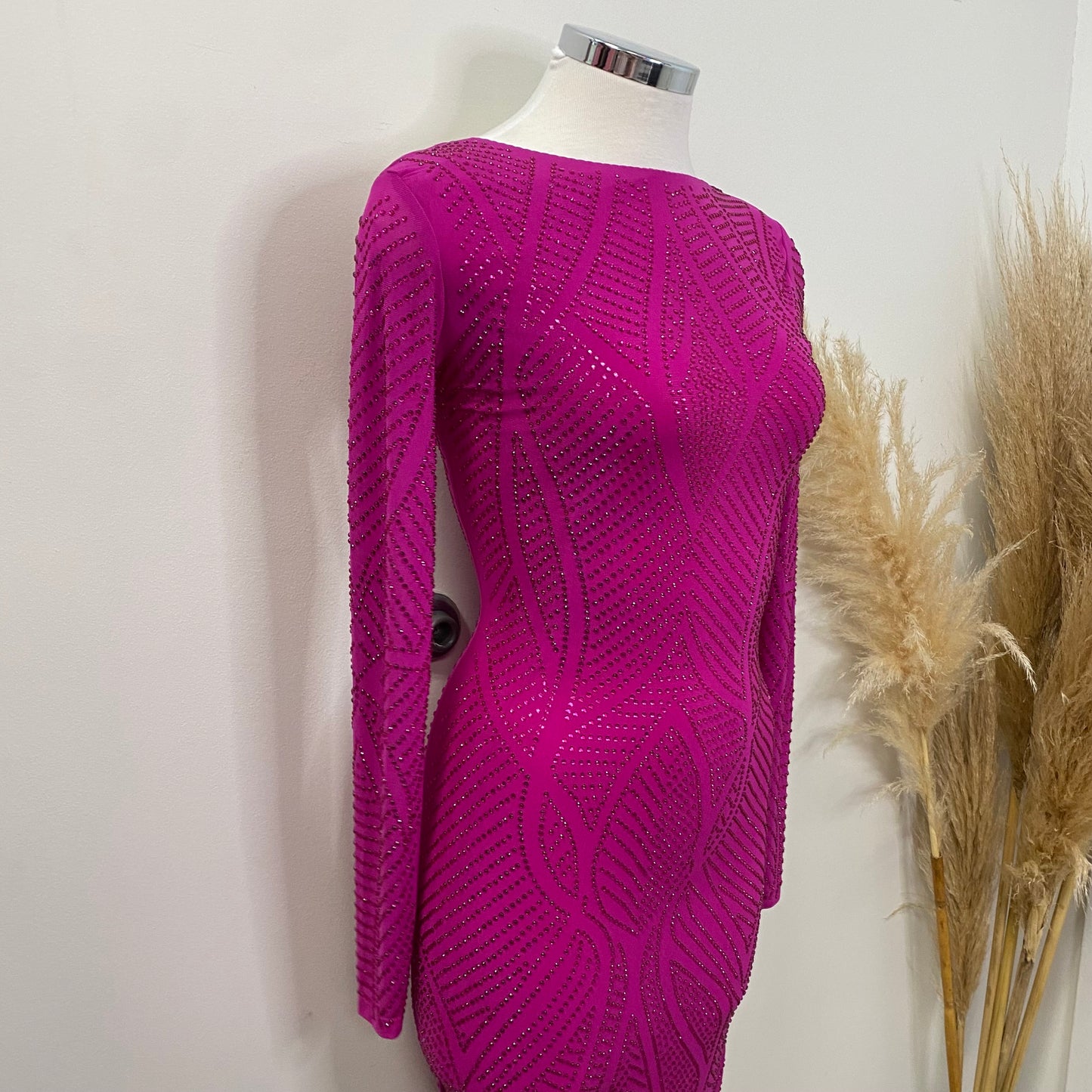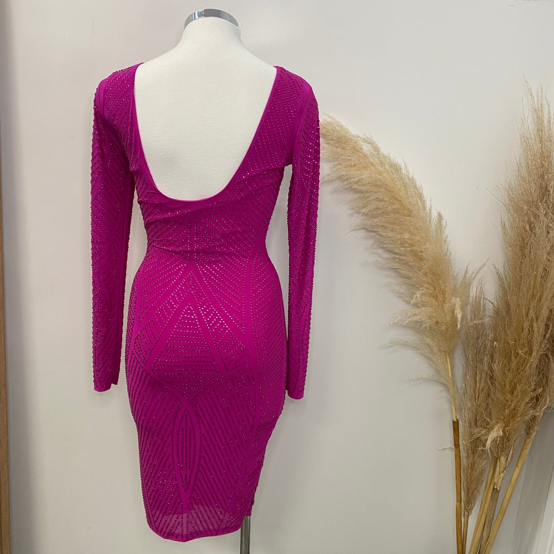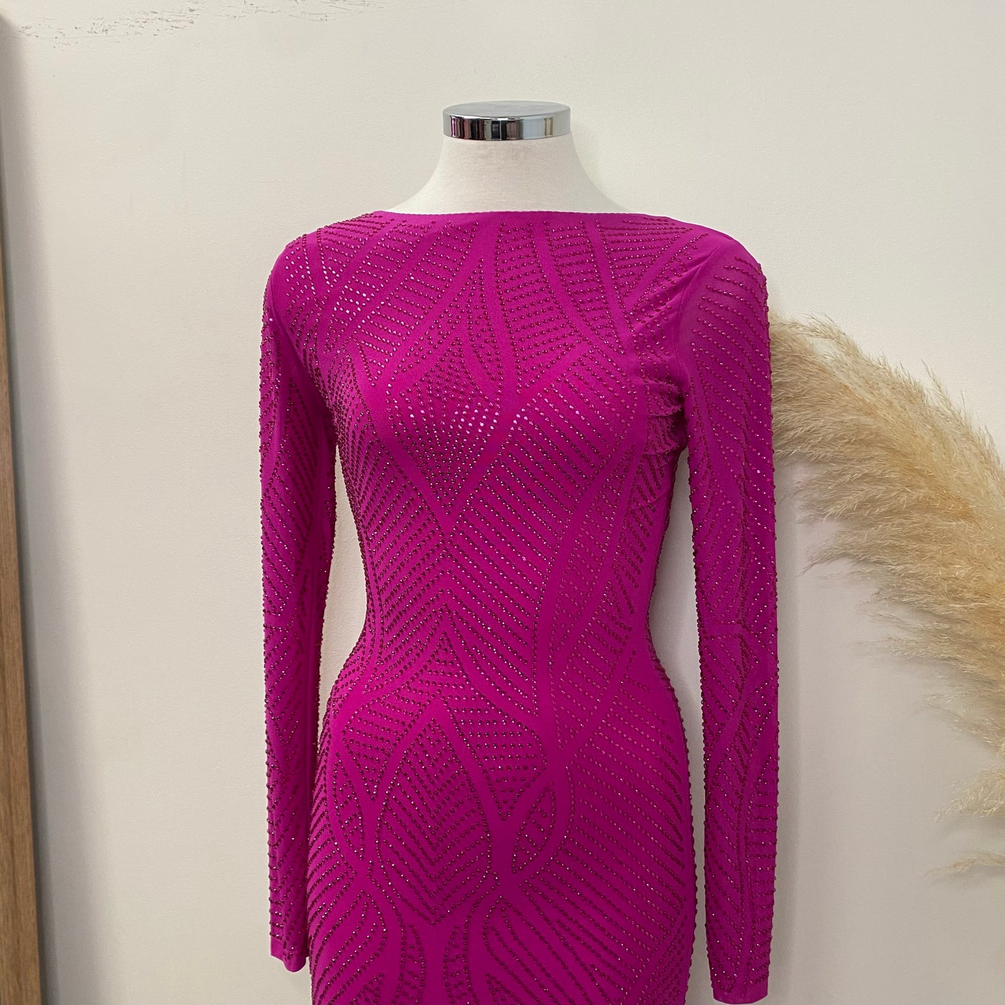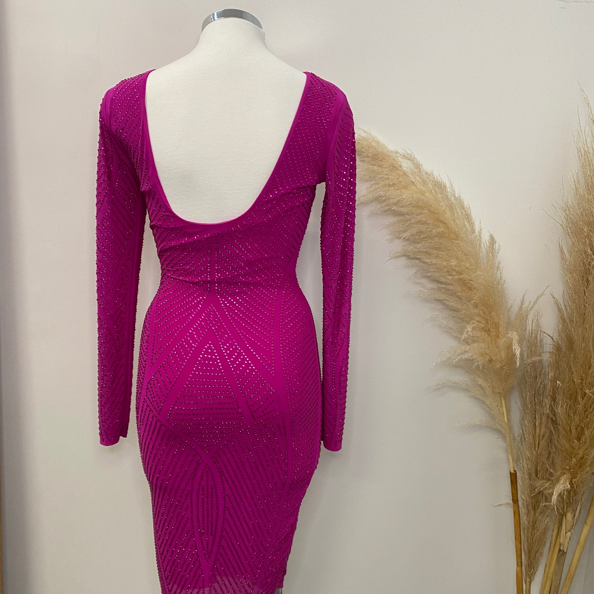 RHINESTONE FRONT AND BACK MINI DRESS LONG SLEEVE OPEN BACK BODYCON MINI DRESS