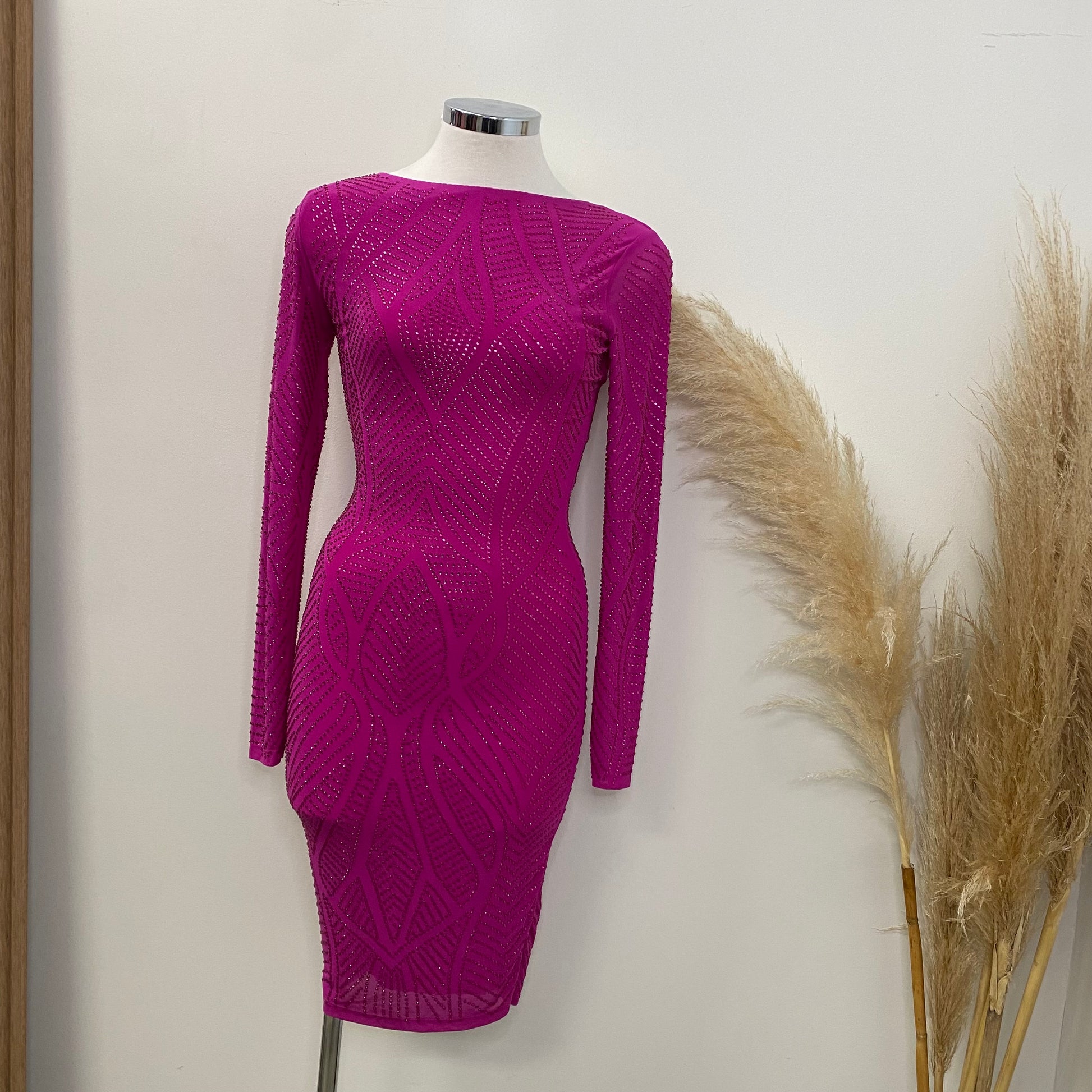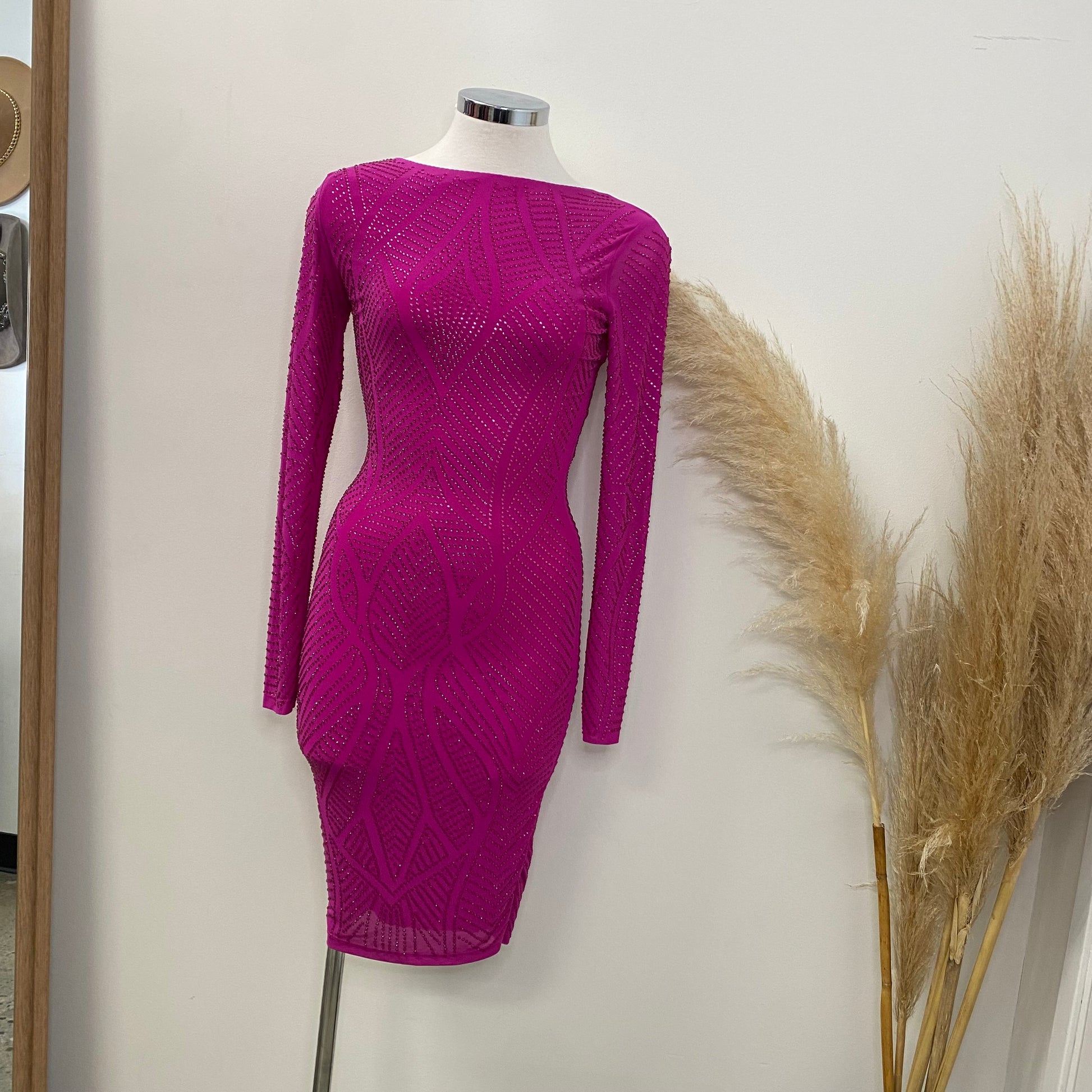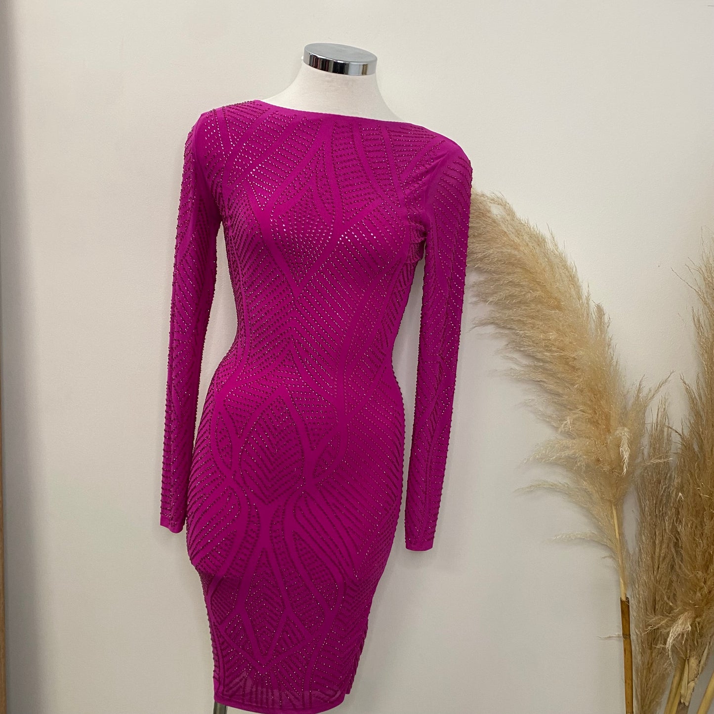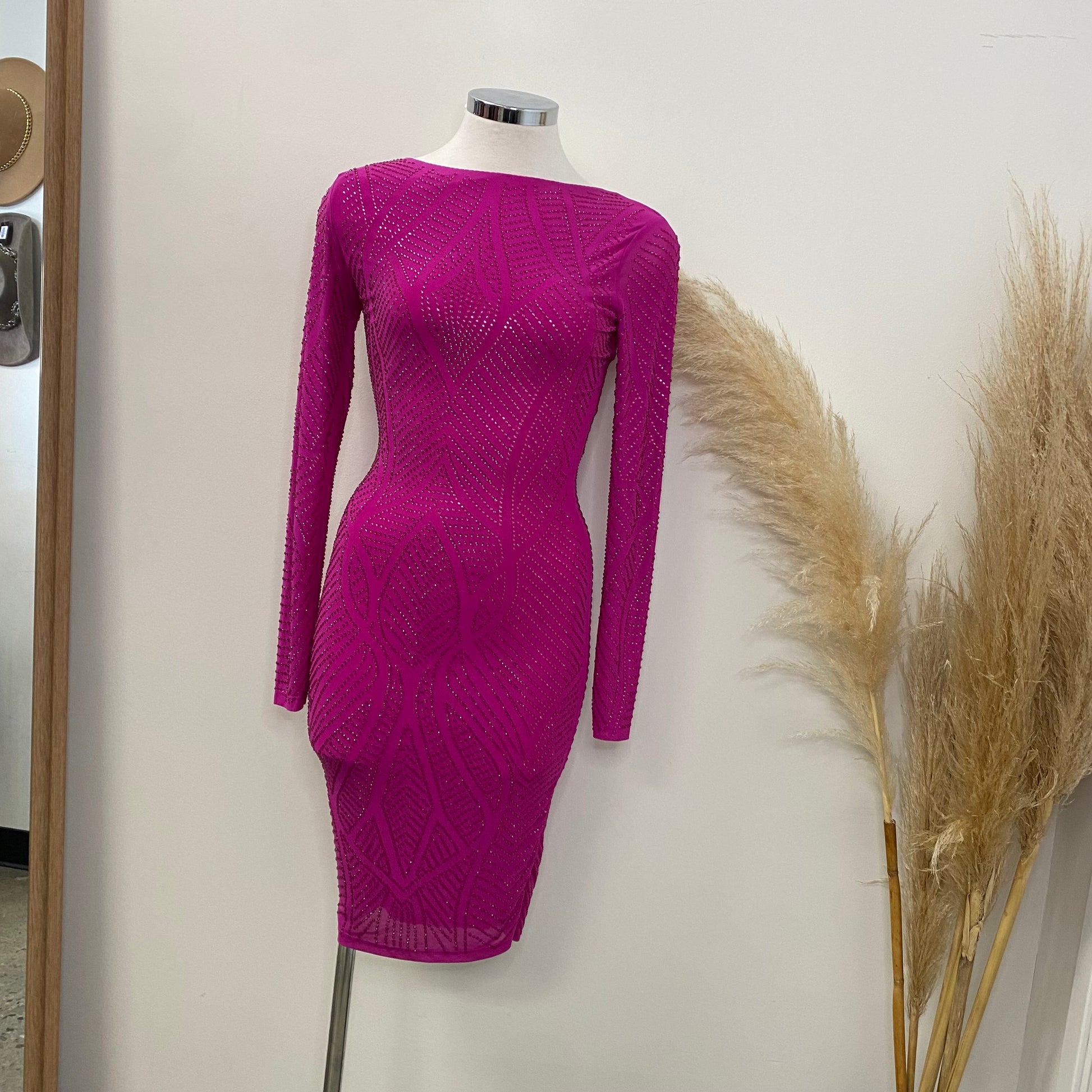 RHINESTONE FRONT AND BACK MINI DRESS LONG SLEEVE OPEN BACK BODYCON MINI DRESS
